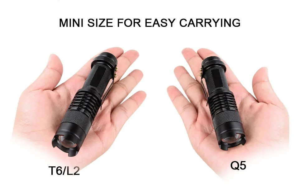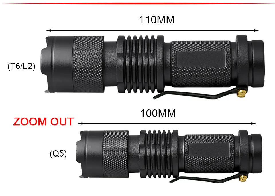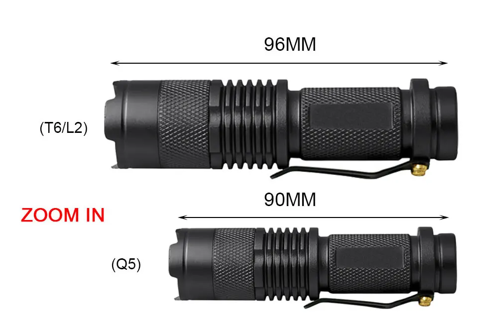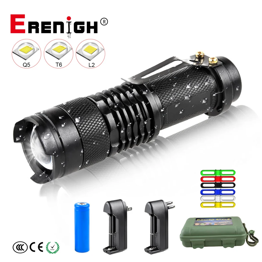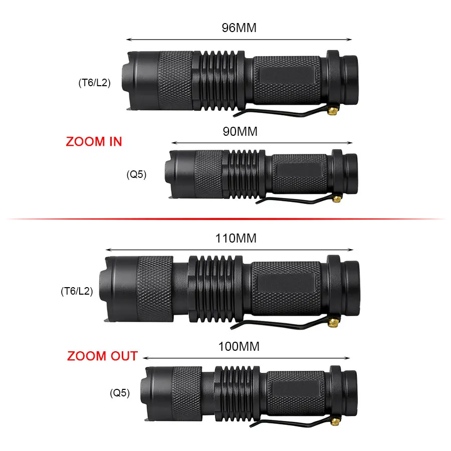 Светодиодный фонарь, масштабируемый, 2000 лм, Q5, 3 режима, 14500, T6, L2, 5 режимов, 18650, регулируемый фокус, водонепроницаемый, для улицы