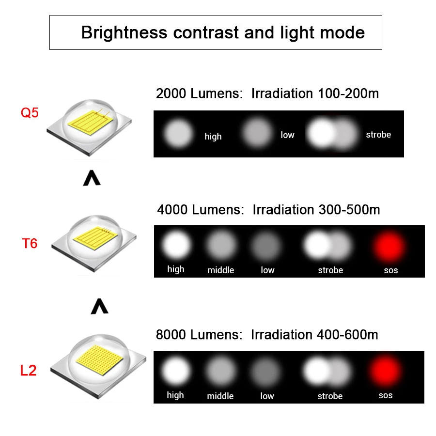 Посылка включает в себя:Посылка A: 1 * фонарик (без аккумулятора)Посылка B: 1 * фонарик + 1 * перезаряжаемая литиевая батарея + 1 * зарядное устройство (ЕС/США)Посылка C: 1 * фонарик + 1 * перезаряжаемая литиевая батарея + 1 * зарядное устройство (ЕС/США) + посылкаТехнические характеристики для Q5 Flahlight:Светодиодный источник: Q5/T6/L2Режим Q5: 3 режима (высокий-низкий-Стробоскоп)Режим T6/L2: 5 режимов (high-middle-low-SOS-Strobe)Срок службы: 100000 часовПереключатель: Хвостовая крышка Clicky/ClickieОбъектив: выпуклая линзаЧехол Материал: Прочный авиационный алюминийБатарея: Q5 (14500 батареи) , T6/L2 (18650 батареи)Размеры: 92 мм (Д) x 26 мм (HD) x 20 мм (TD)Вес нетто (г): Q5(45 г), T6/L2(75 г)