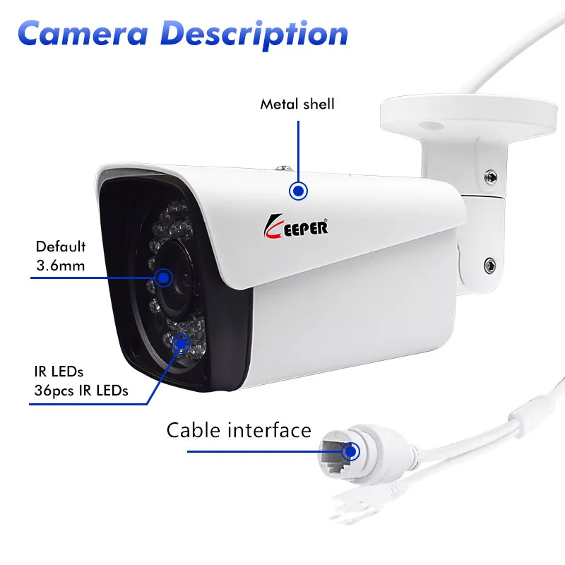 IP-камера Keeper H.264 POE 1080P уличная Водонепроницаемая сетевая цилиндрическая камера видеонаблюдения 2 МП 3,66 мм объектив P2P Onvif сетевая камера видеорегистратора s