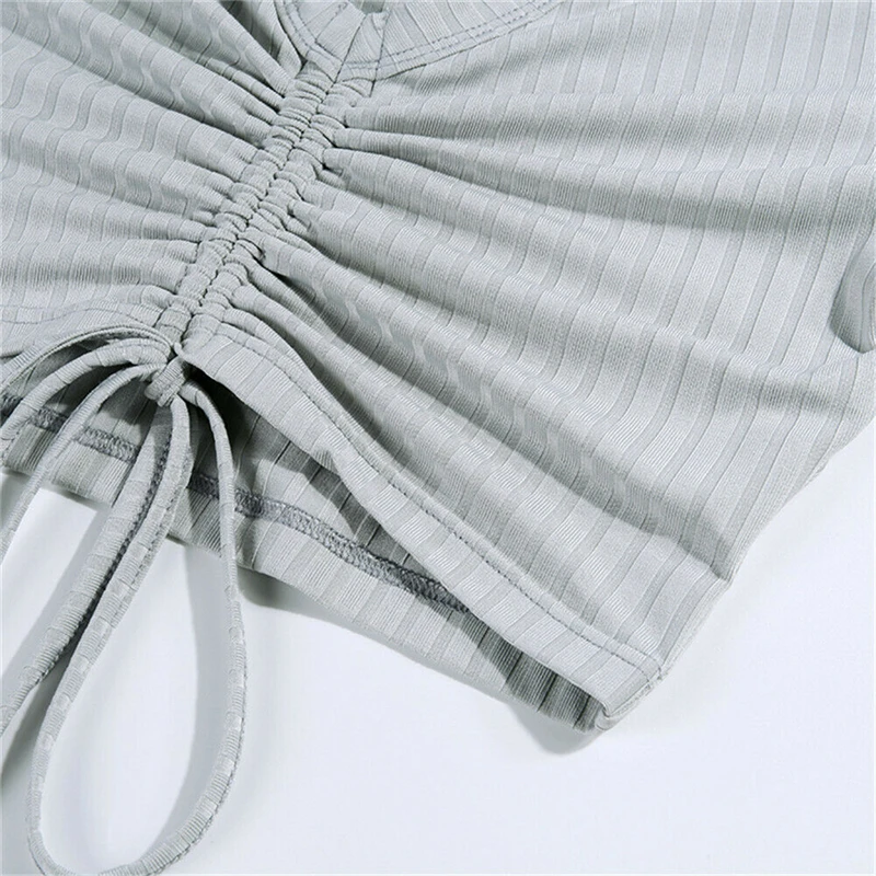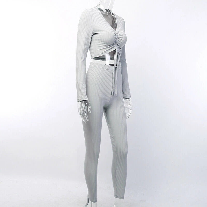 Женская одежда из 2 предметов, эластичный вязаный укороченный топ, костюм для отдыха, женский спортивный костюм, повседневные длинные брюки, повседневный удобный серый комплект для отдыха