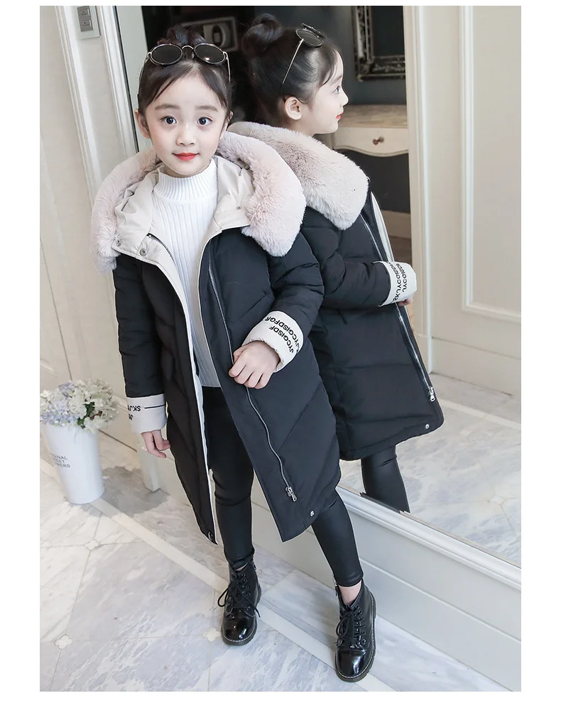 Куртка детская зимняя, на девочку, с капюшоном, теплая, 2020