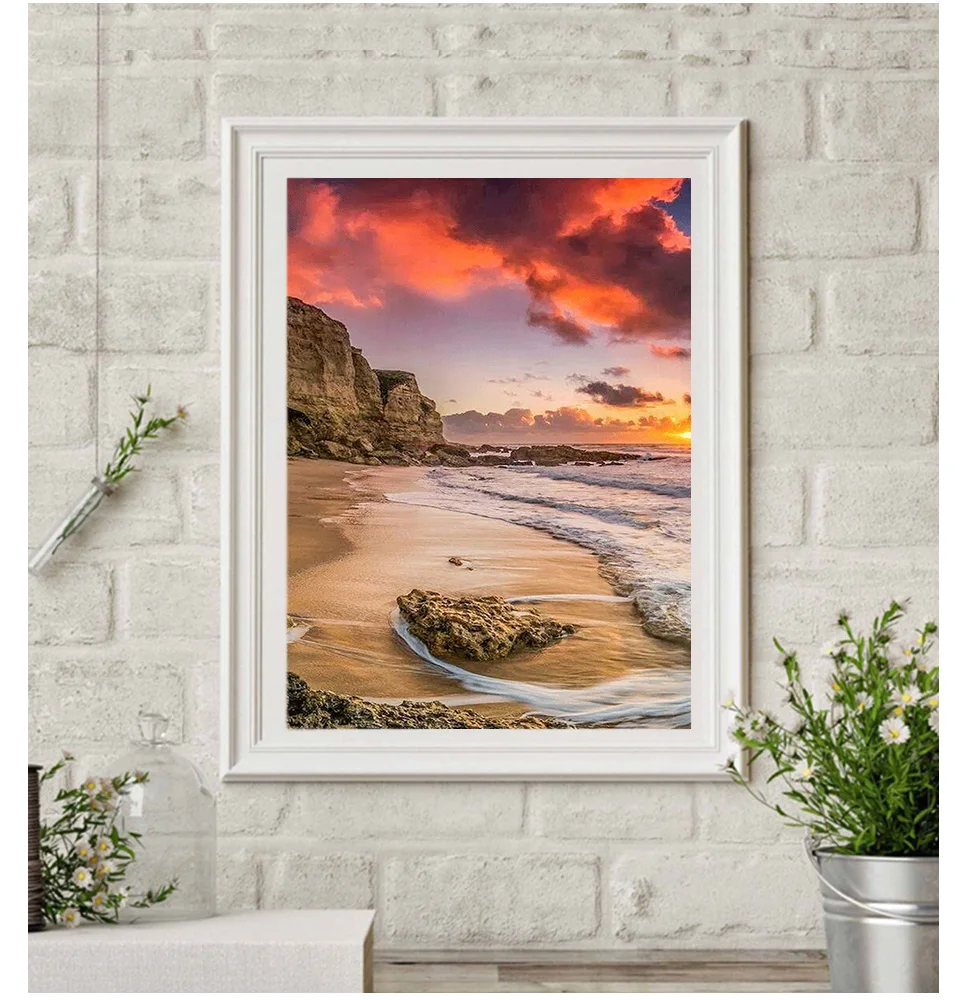 Алмазная живопись 5D сделай сам, Пляжная вышивка крестиком, полный Алмазный пейзаж, алмазная вышивка стразы, закат, мазаическая картина, распродажа