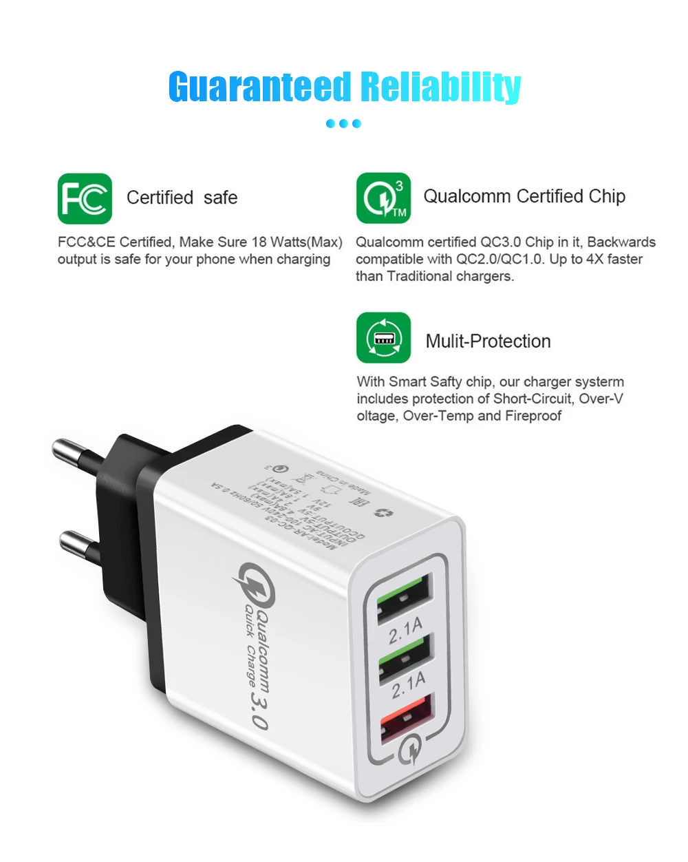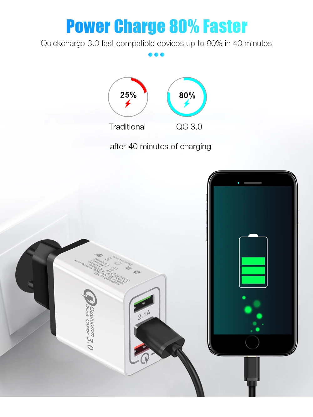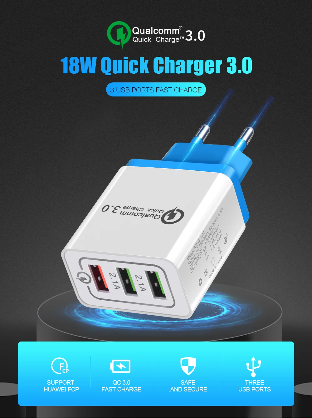 3 Порты Quick Charge 3,0 стены быстро Зарядное устройство адаптер M...