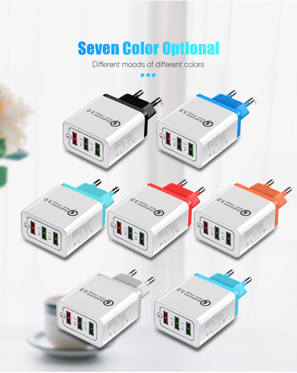 Зарядное устройство с 3 USB-портами для ЕС, быстрая зарядка 3,0 для...