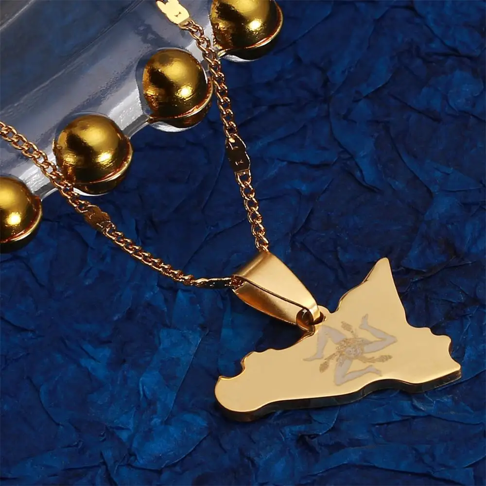 Ожерелье из нержавеющей стали серебряного цвета с картой Сицилии, подвески, очаровательные женские ювелирные изделия