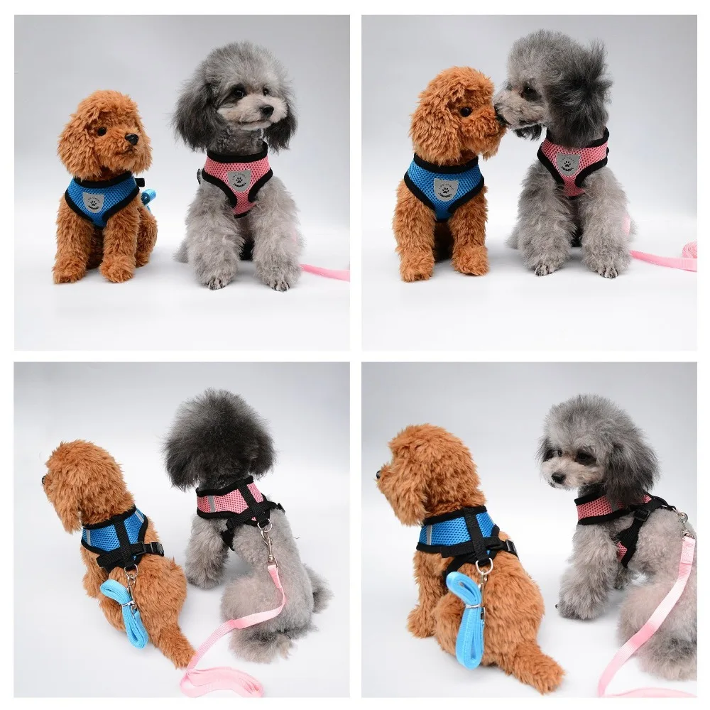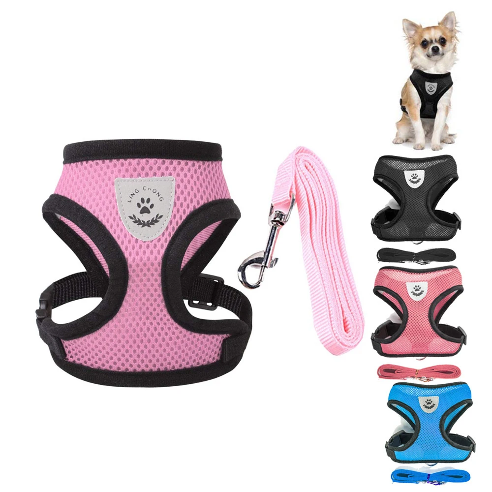 Шлейка с поводком для домашних питомцев, воздухопроницаемая жилетка с сеткой для маленьких собак и щенков, чихуахуа, мопса, бульдога, кошек