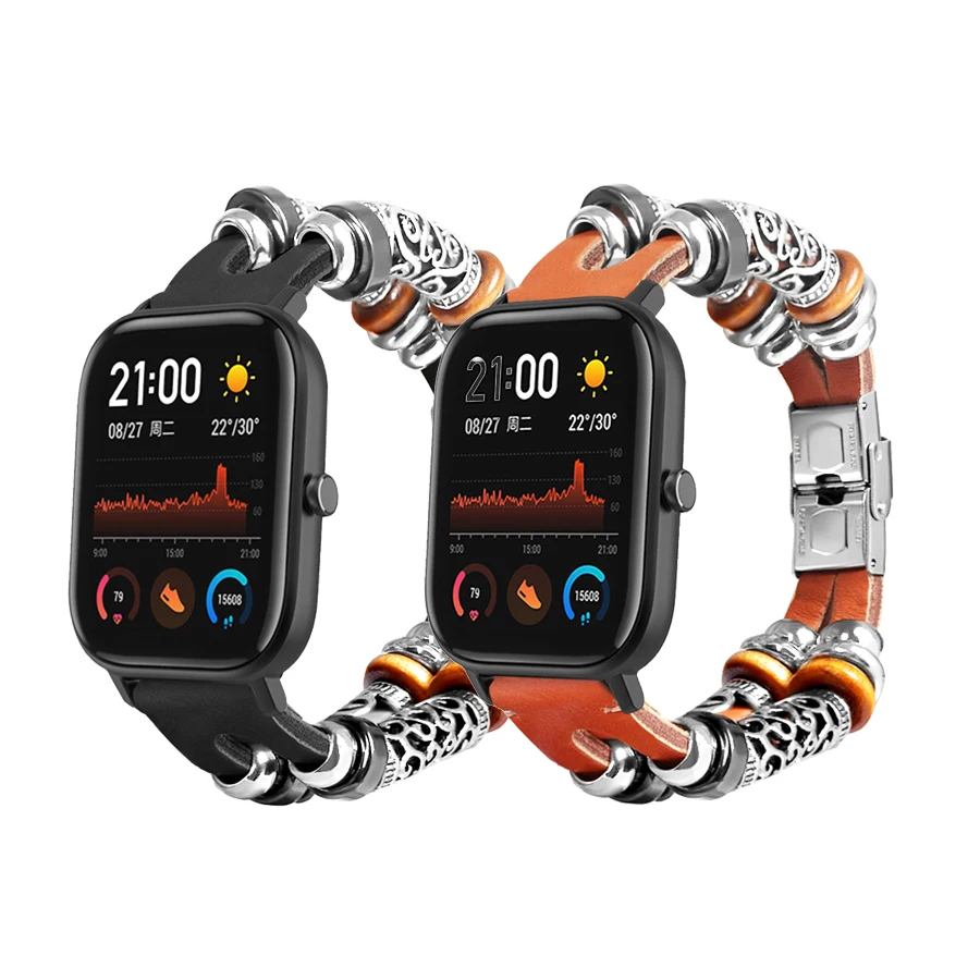 Ремешок для часов Huami Amazfit GTS с бисером в стиле ретро, кожаный, для Amazfit GTR, браслет, аксессуары для Amazfit Bip 20 мм