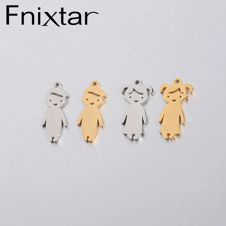 Fnixtar, 20 шт.лот, зеркальный лак, нержавеющая сталь, подвески для маленьких мальчиков и девочек, очаровательные Семейные фигурки, DIY ожерелье, ювелирное изделие