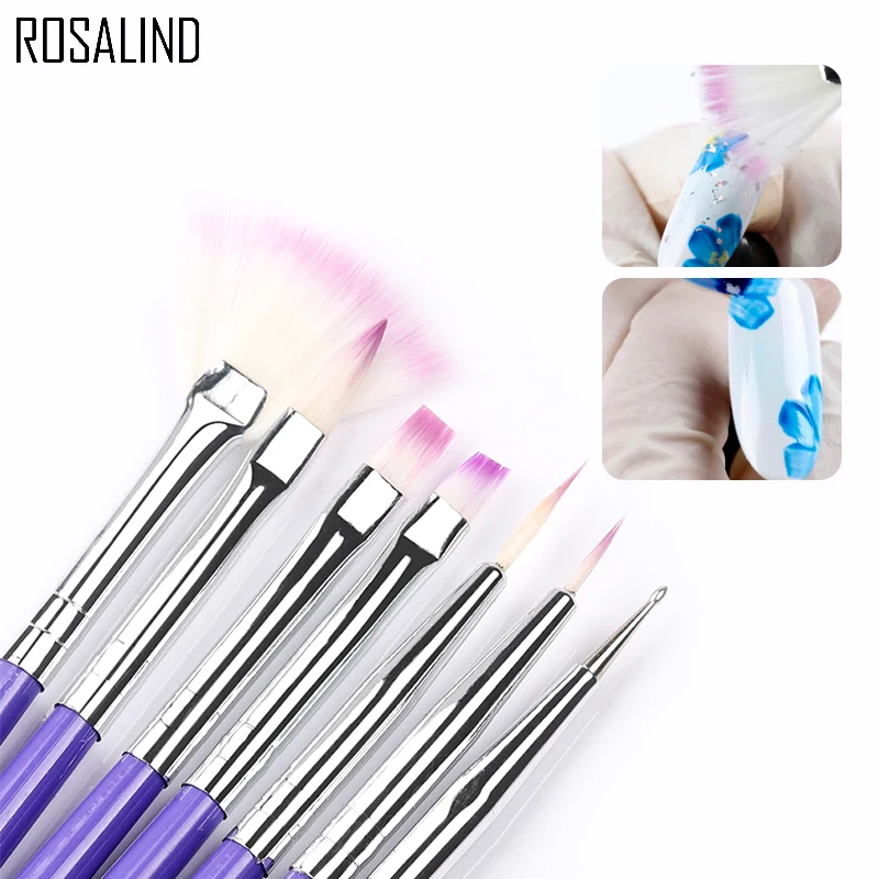 ROSALIND 7 шт./компл. инструменты для ногтей кисть для рисования ногтей гелевые щетки для полировки инструменты гелевая ручка для рисования