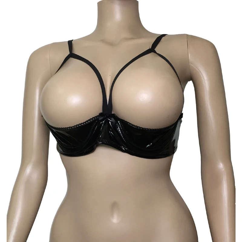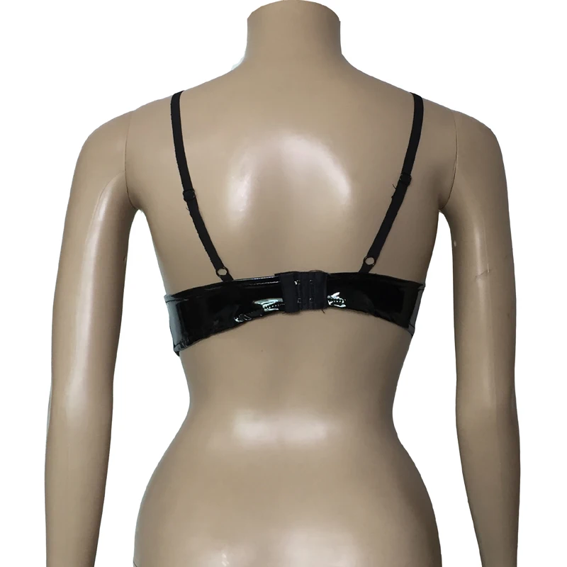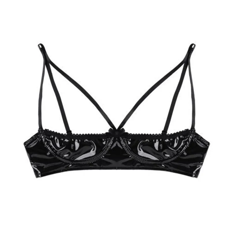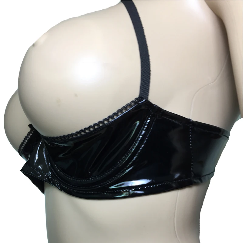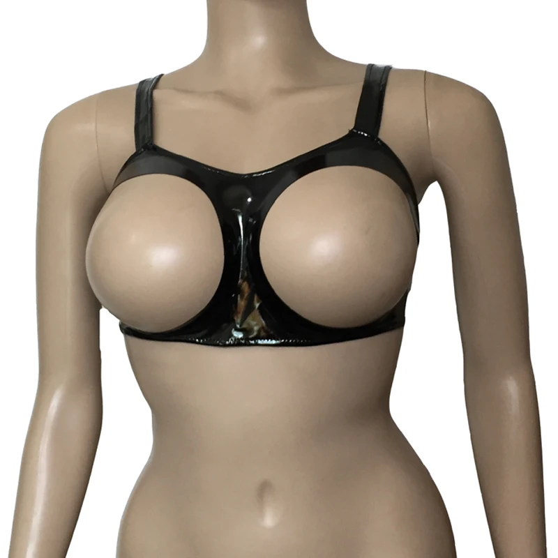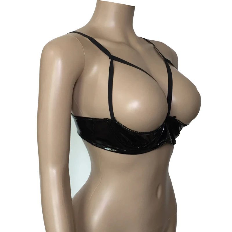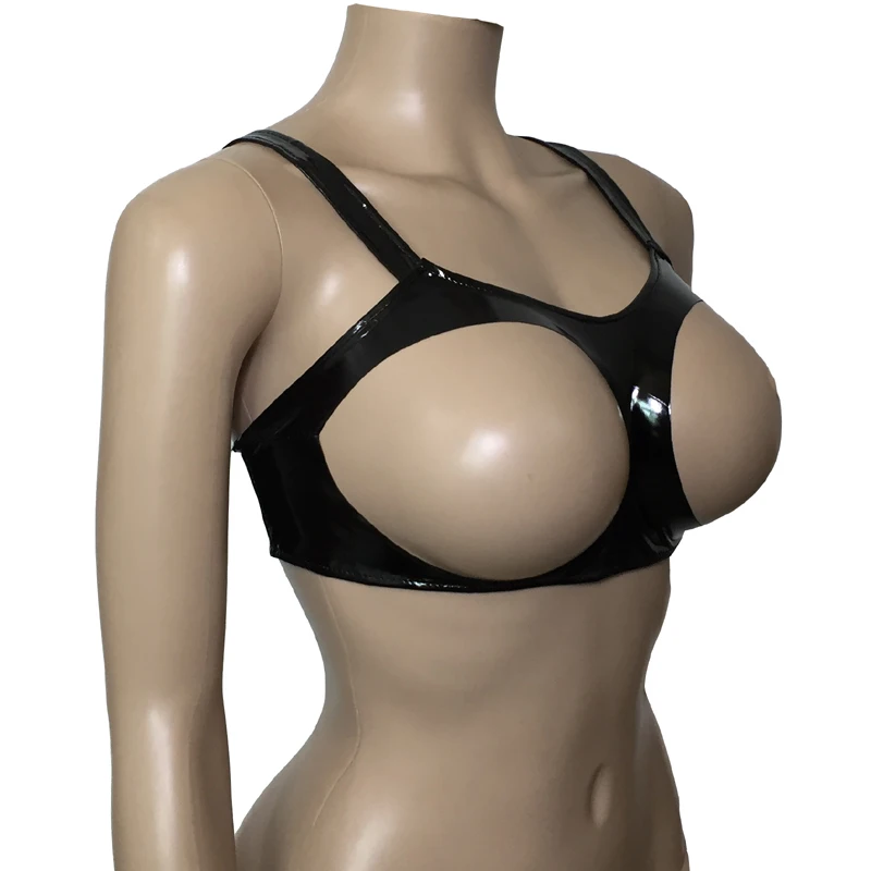 Майка женская из лакированной кожи, без чашечек, с открытой грудью, бюстгальтер портупея для тела