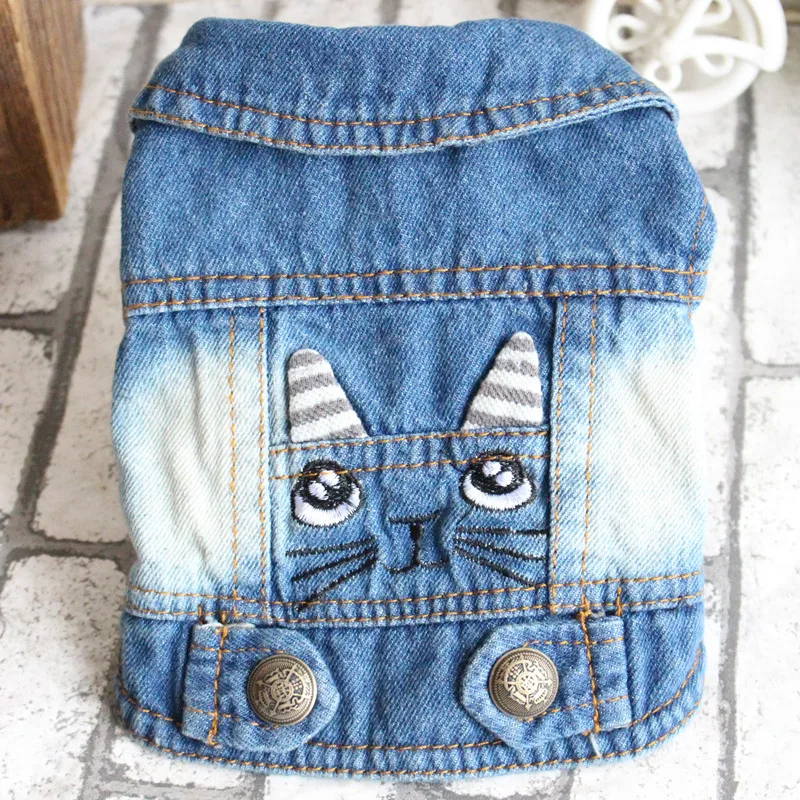 XS-2XL собака одежда джинсовая толстовка с изображением кота; Сезон весна-лето; Жилет для щенков Чихуахуа Йорки маленькие собаки крутая джинсовая куртка костюм для котенка