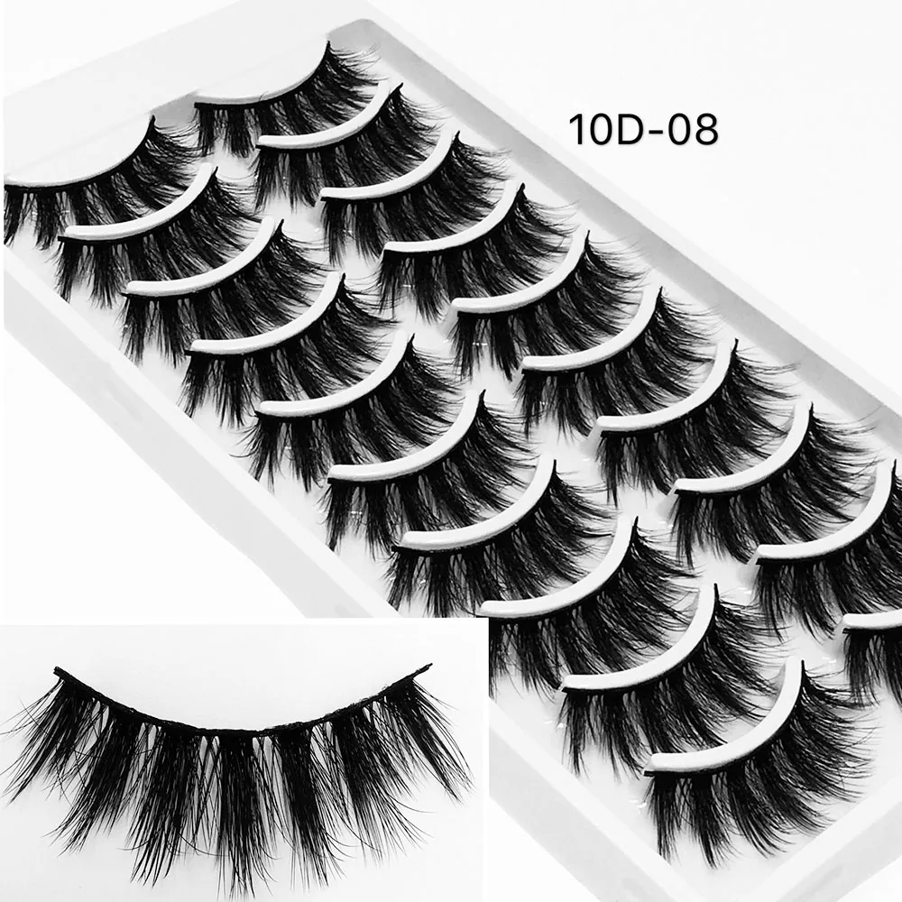 Накладные 3D ресницы из норки, 10 пар, густые натуральные накладные ресницы для макияжа, накладные ресницы ручной работы
