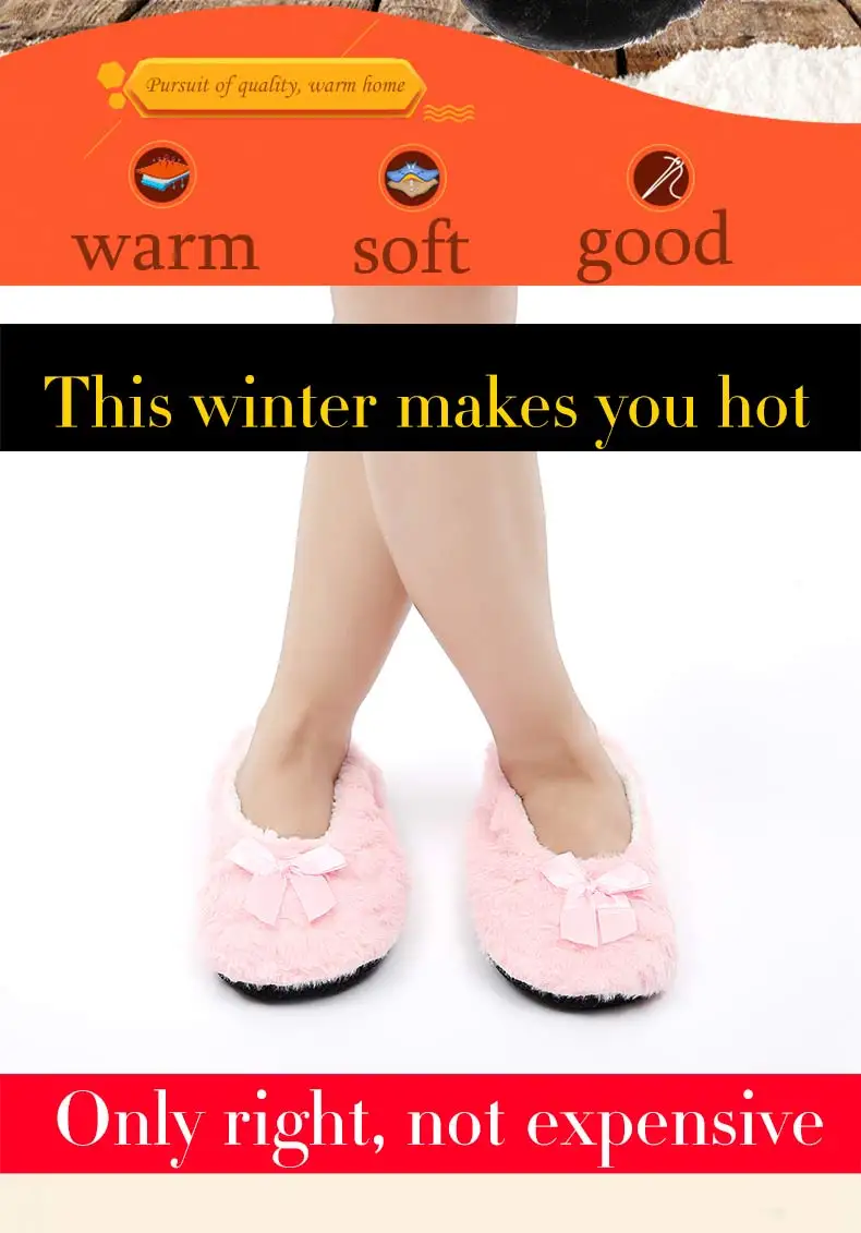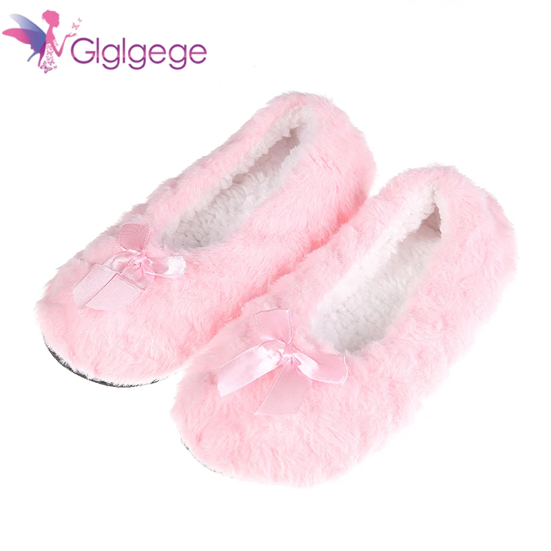 Женские теплые туфли glglglgege, черные закрытые туфли на толстой плюшевой подкладке, нескользящая Мягкая подошва, милые домашние напольные туфли с бантом для дома, 2019