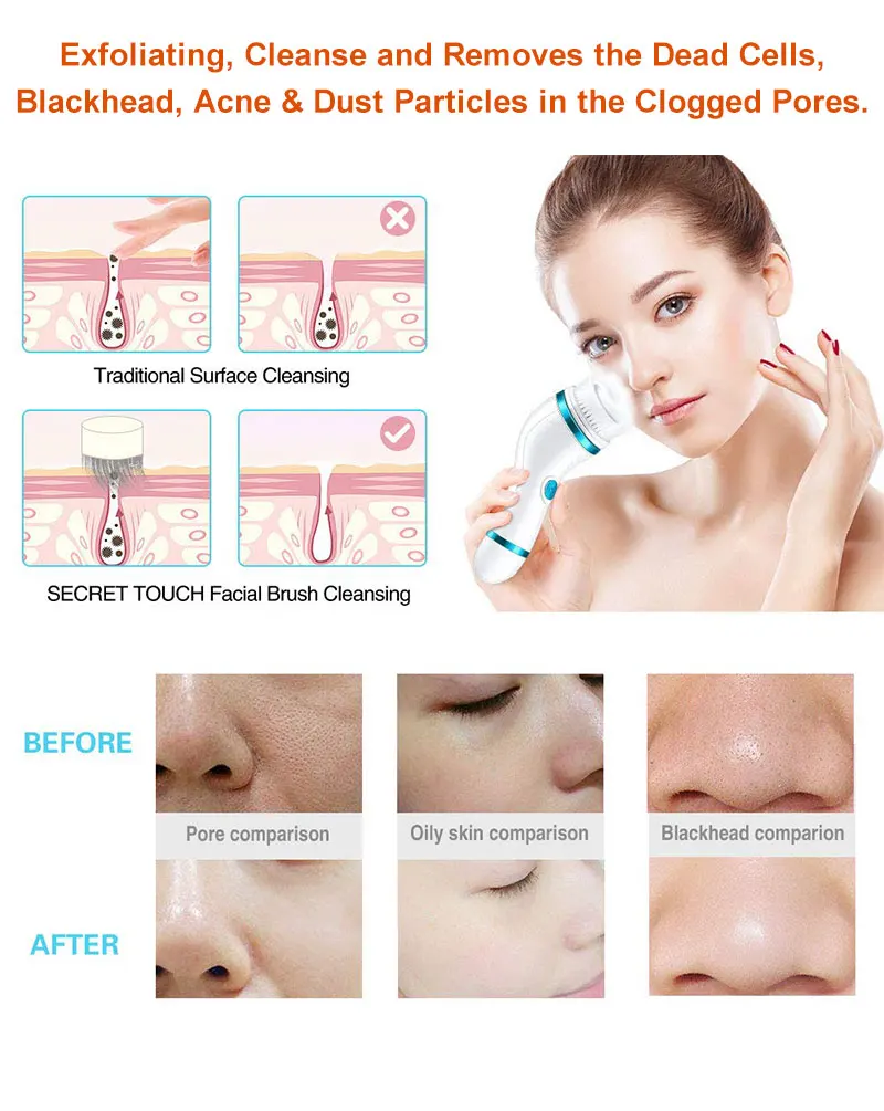Ультразвуковая электрическая щетка для чистки лица 4 в 1, массажная перезаряжаемая USB-щетка для чистки пор, устройство для чистки лица