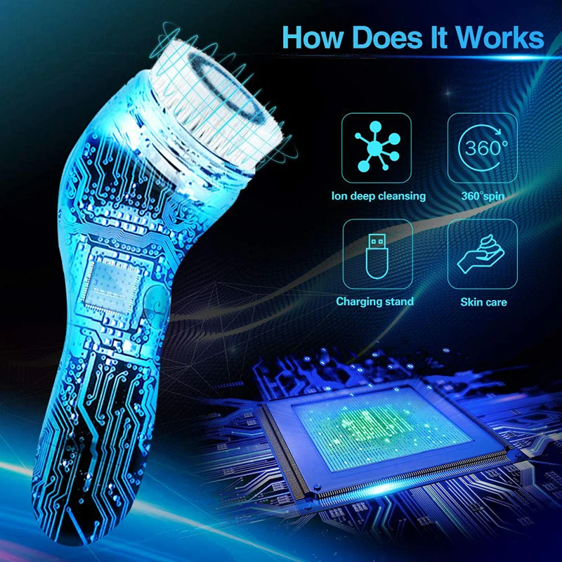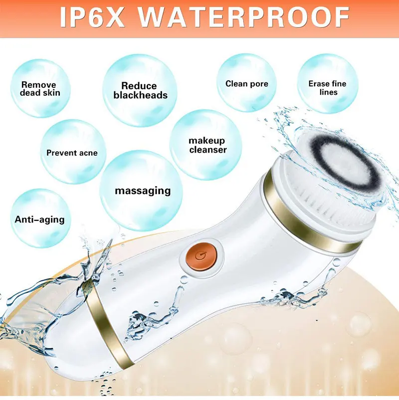 Электрическая щетка для чистки лица с 4 головками, 2 скорости