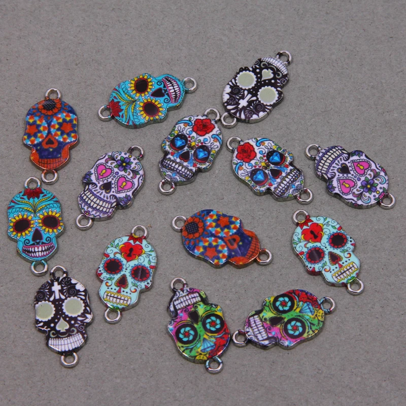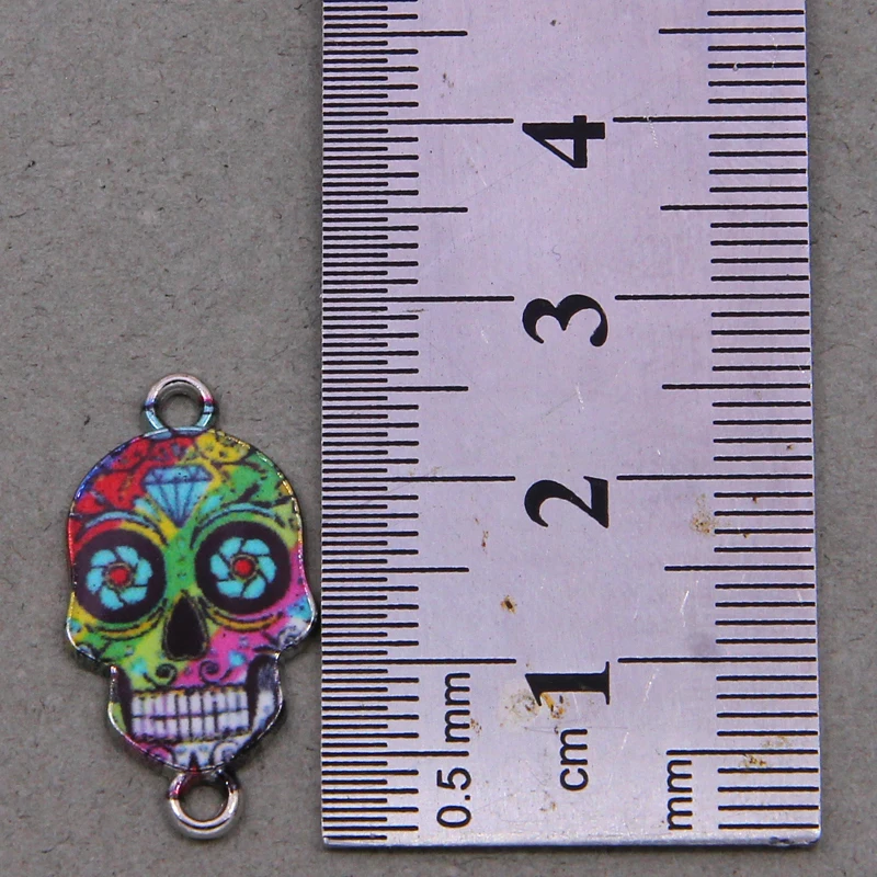 Цветок эмалированный серебристый, для изготовления украшений, сережек, 14 х26 х2 мм, 6 шт., соединитель в виде черепа