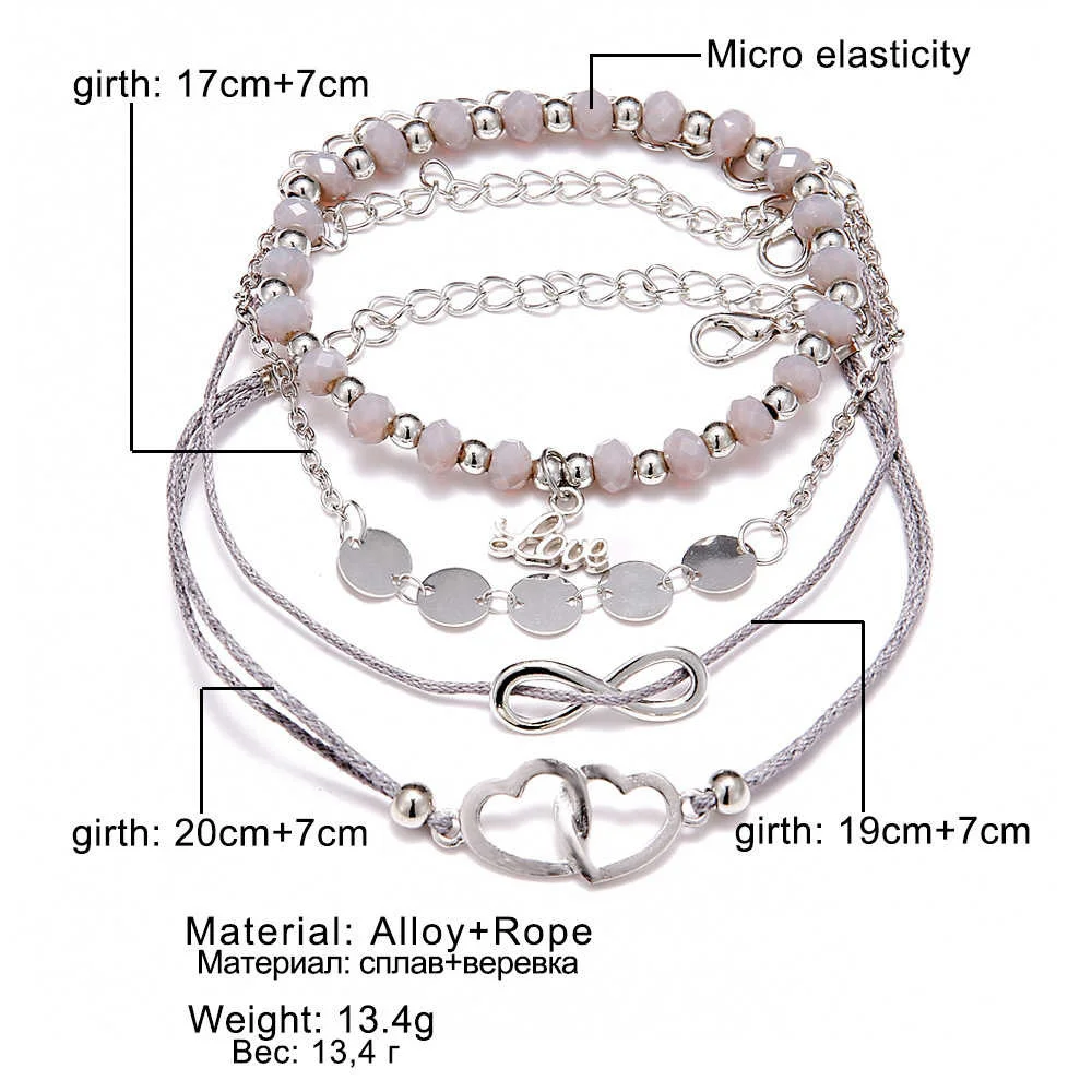 Веревочные браслеты и браслеты в стиле бохо для женщин, богемный браслет с бусинами, Женский комплект, модные Многослойные ювелирные аксессуары, бижутерия