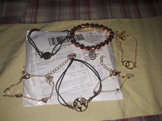 Посылка шла 3 недели, браслеты очень хорошие, качественные. Мне на тоненькую руку великоваты, а также все отлично. Пришли все те, какие и заказывала.