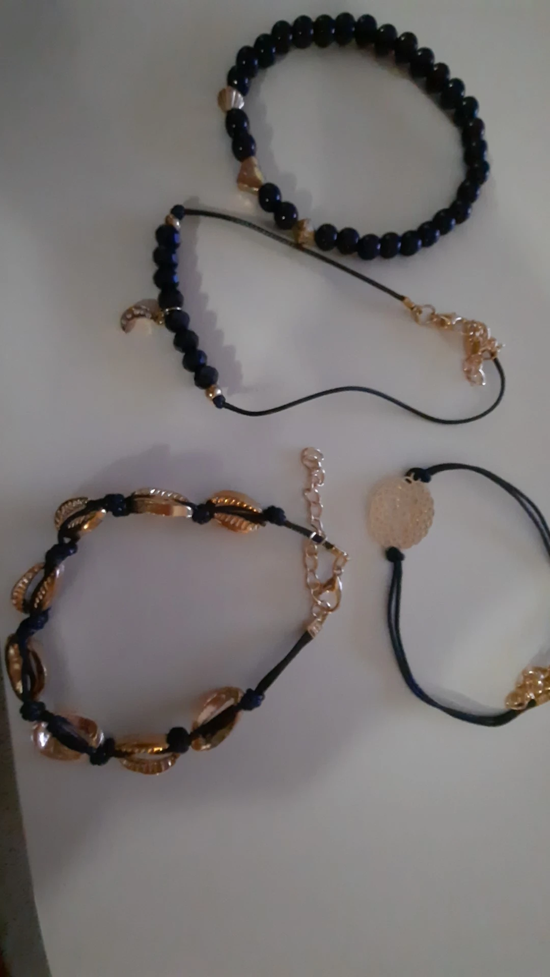 Странные браслеты если честно. С одной стороны хорошо смотрятся, но вместе не оденешь. И цвет не синий а чёрный.