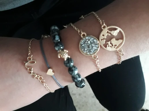 заказала набор с единорогом, пришло все ровно как на картинке. Заранее скажу, что браслеты скорее на тонкую или детскую руку. Заказала младшей сестре - она в восторге. позолота хорошо держится. Выглядит симпатично и не дёшево. Бусины тяжёлые, будто из камня. никаких нареканий, все очень здорово. Пришло в РБ за 16 дней, что мой личный рекорд.Браслеты уже отдала, не могу сфотографировать, но будьте уверены, что с картинкой совпадёт