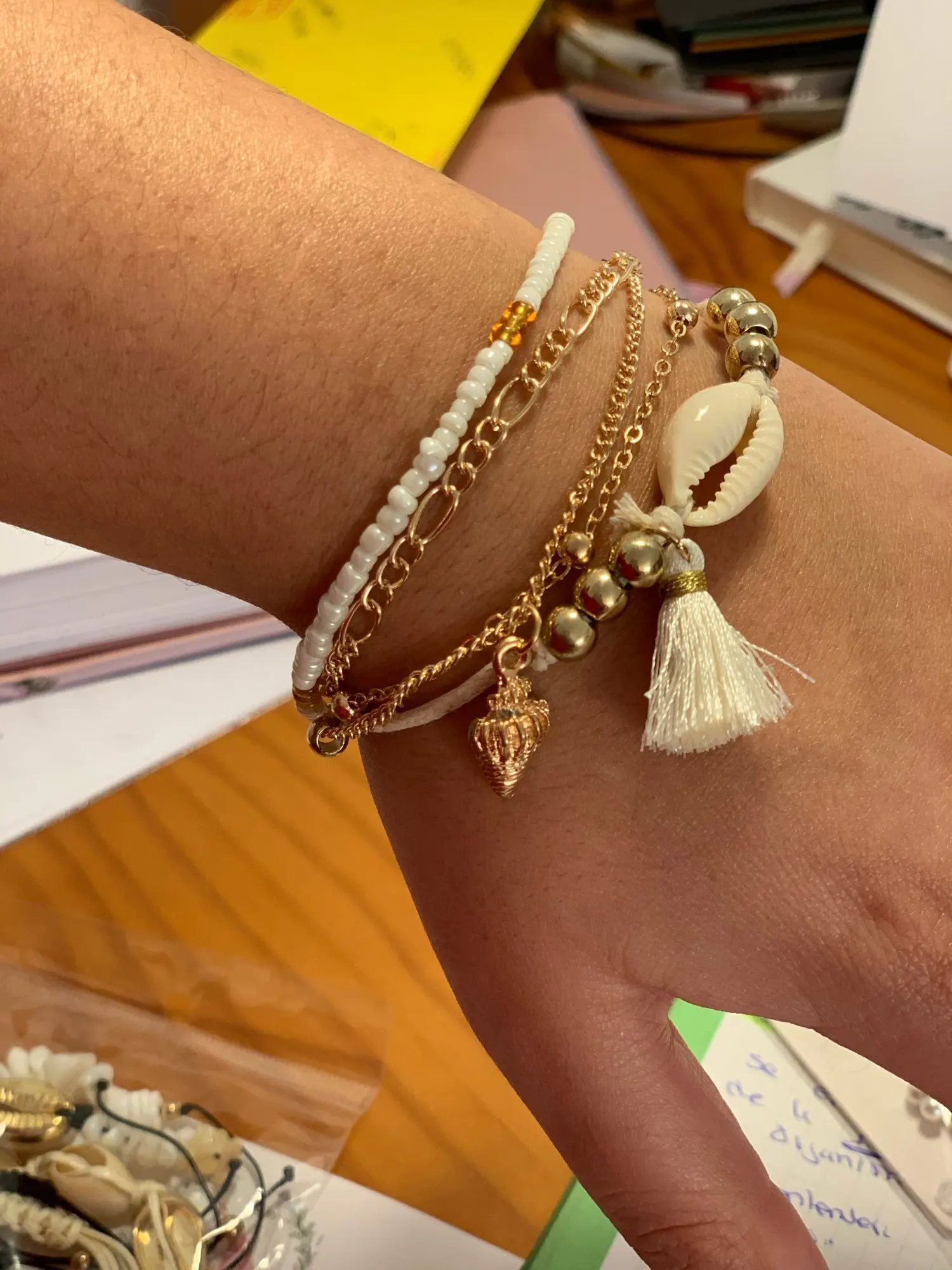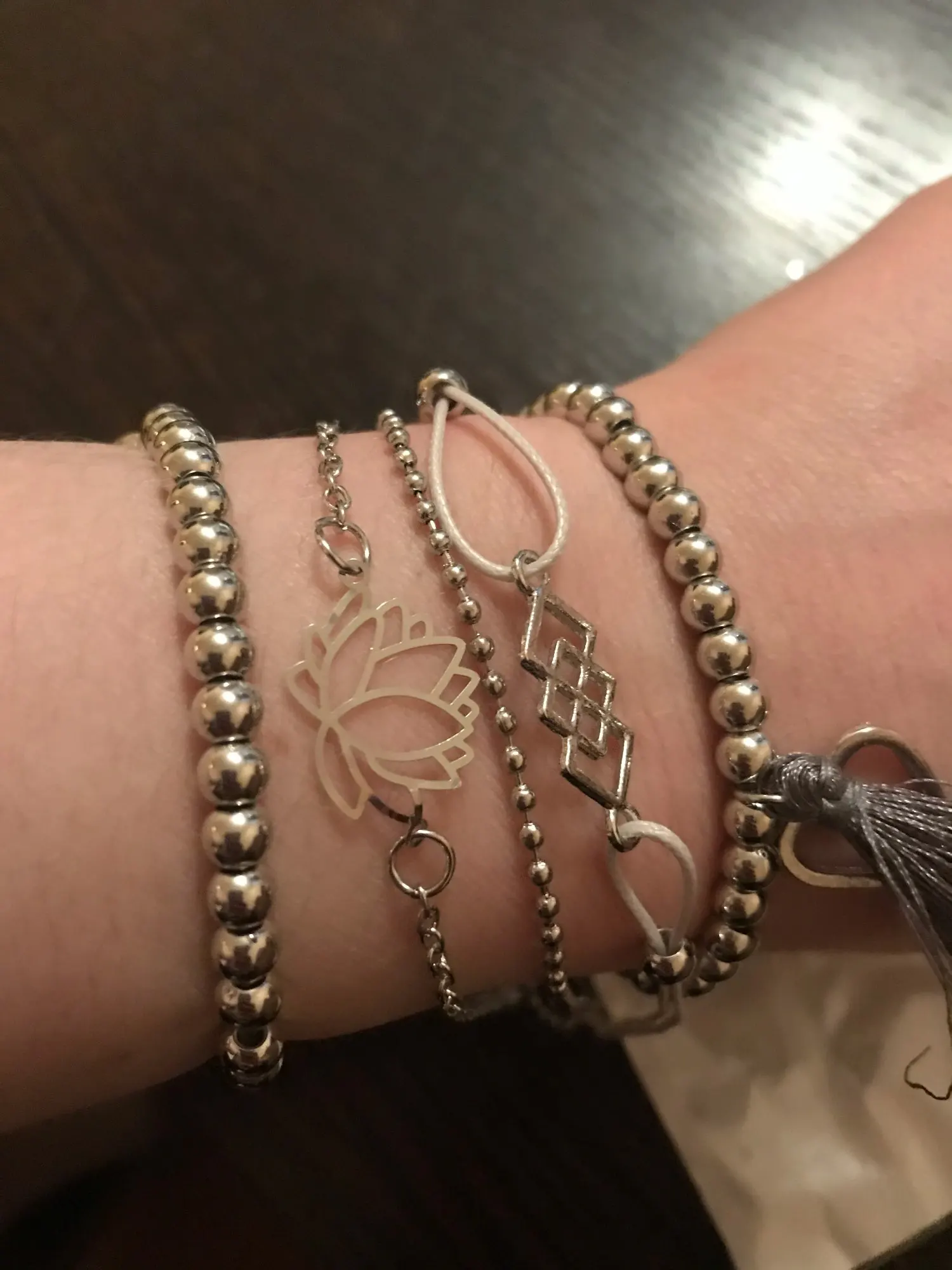The bracelets mostly look as described and the size fits small wrists like mine. However the bracelet with pearls has quite different colours than on the picture (it is mostly orange and brown rather than grey/blue and light pink).