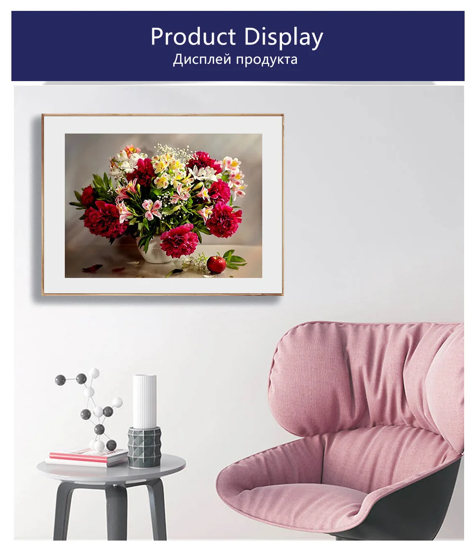 Алмазная вышивка 5D "сделай сам", цветы, ваза, розы, пионы, вышивка крестом, алмазная вышивка, мозаика, украшение для дома