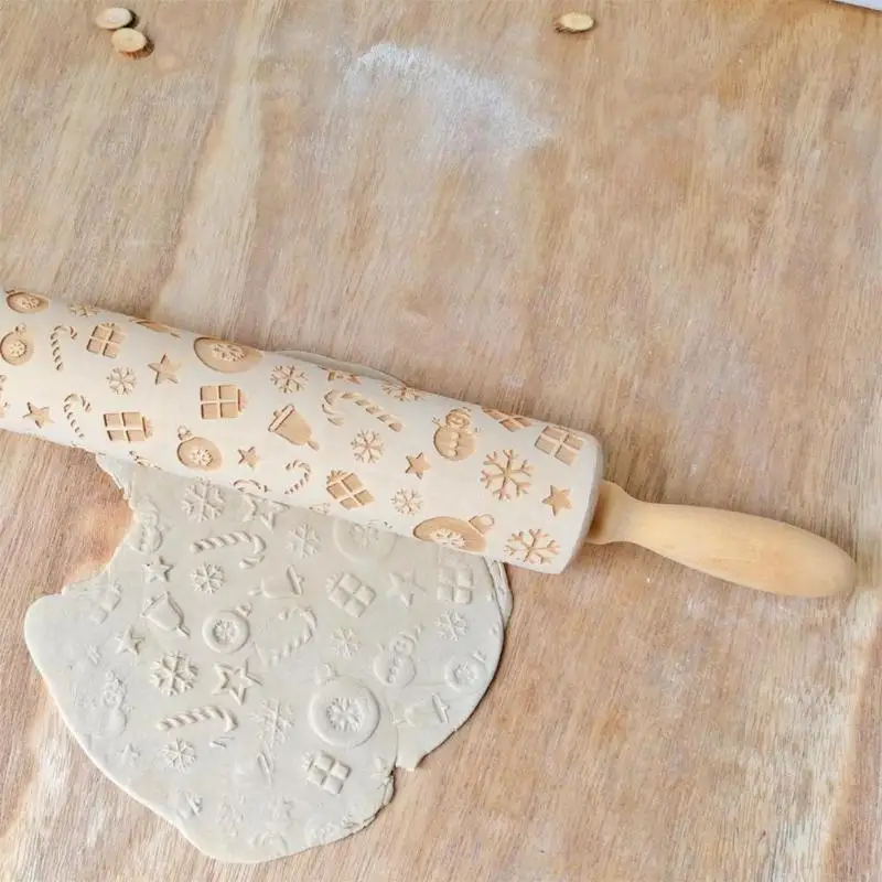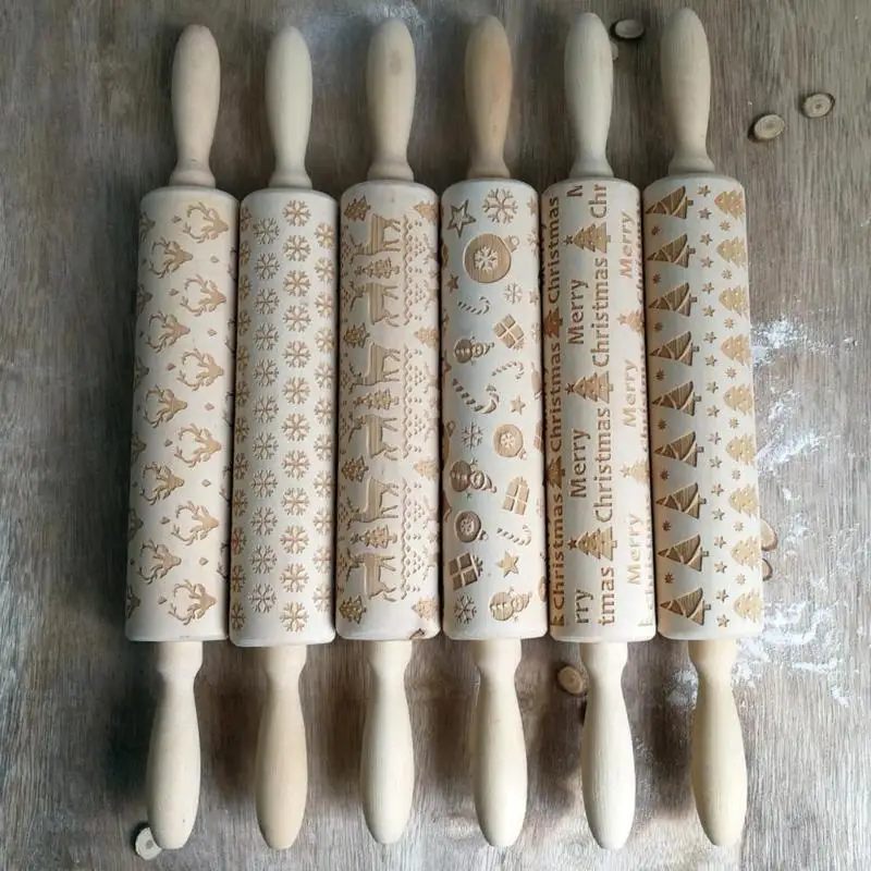 Рождественская Скалка Лазерная Деревянная Рождественская тисненая скалка для теста инструмент для выпечки кондитерских изделий Новогоднее Рождественское украшение