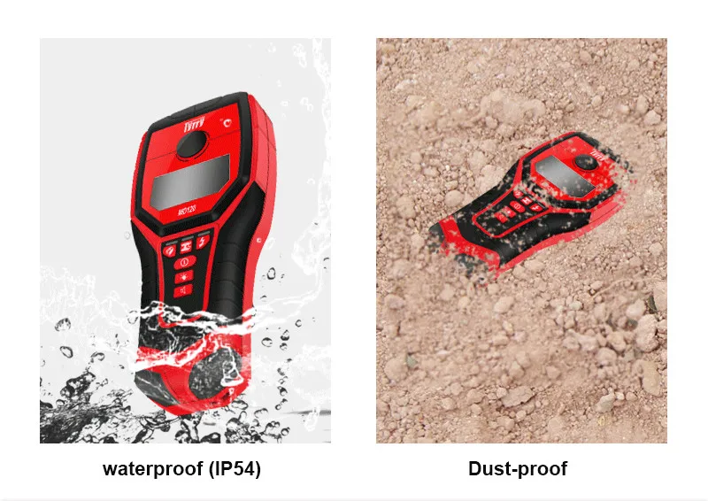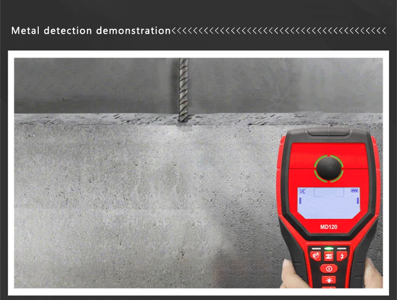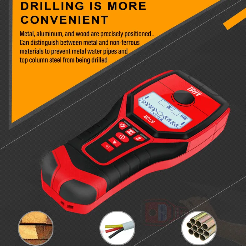 Мульт-режим обнаружения: металлический предмет, жилая проводка, дерево; Быстро найти цель чувствительным индуктором; Встроенное отверстие для маркировки и легко маркировать цель; Удобный противоскользящий дизайн, обеспечивающий вам подходящий опыт использования; Графический ЖК-дисплей, показывает режим, мощность сигнала и батарею