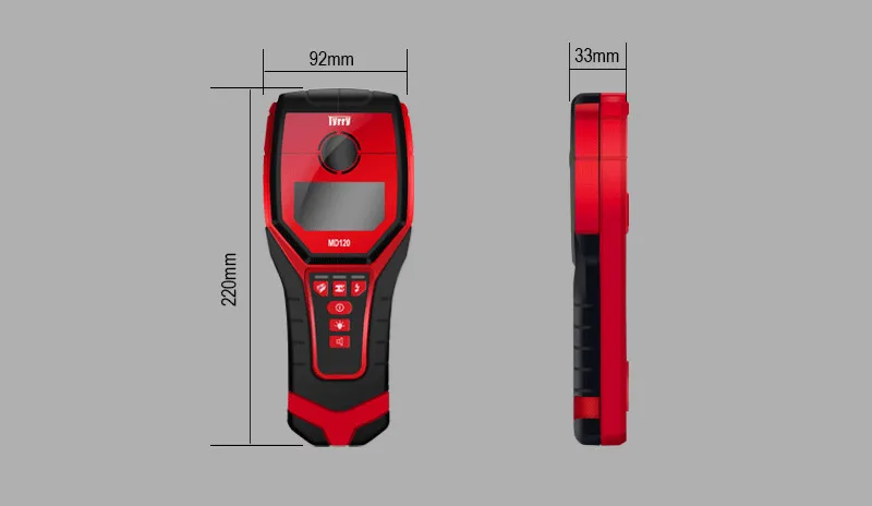 Модель изделия MD120 Цвет Красный Класс защиты от поражения электрическим током IP54 Мощность автоматического выключения 5 минут Операционной Температура -10 ~ 50 °C Для хранения Температура -20 ~ 70 °C Дисплей освещения Да Тип батареи 1x9 вольт 6LR61 (батарея в комплект не входит) Срок службы батареи Около 5 часов Размеры 220*92*33 мм Чистая Вес 270 г