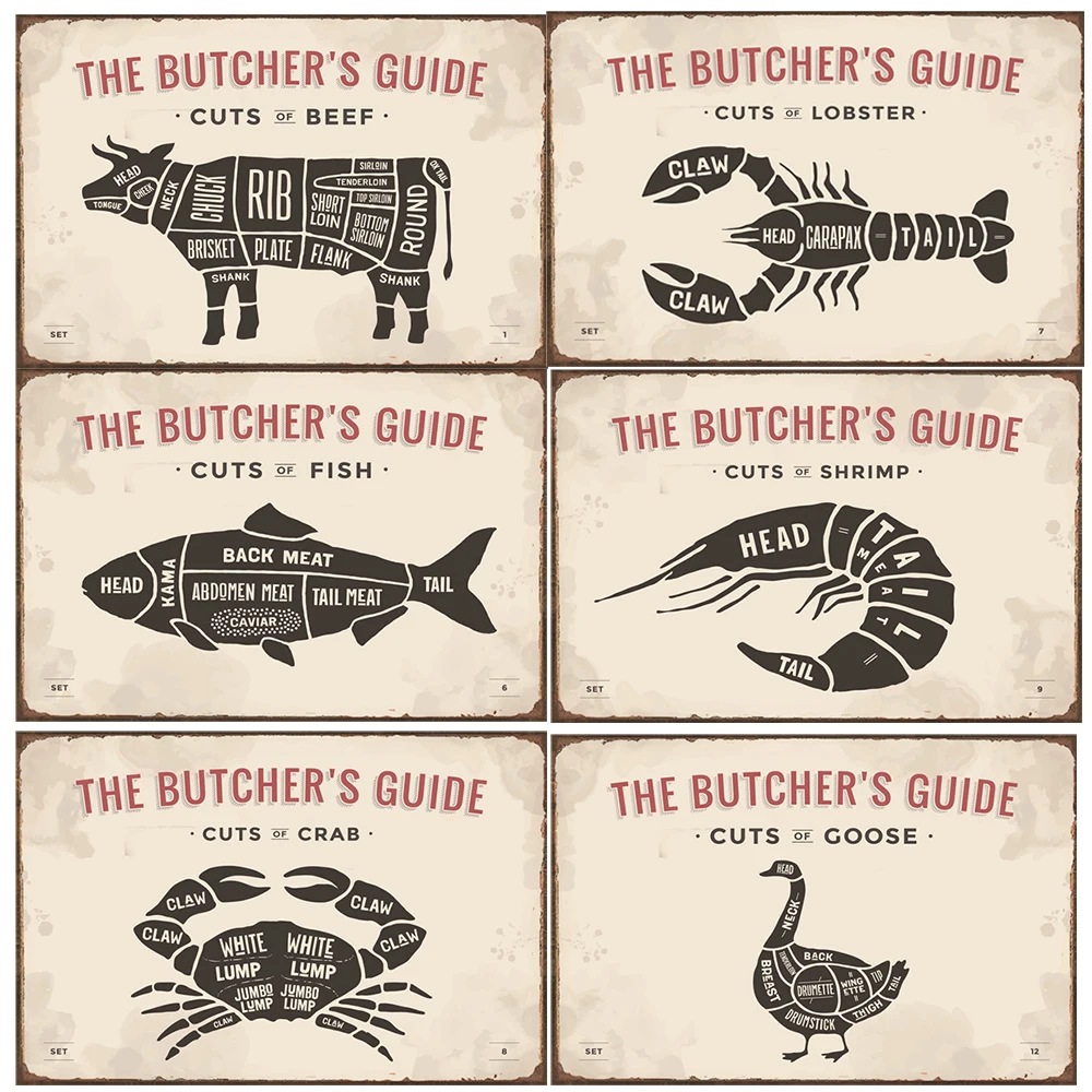 1 шт. винтажные морепродукты, корова, металлические жестяные знаки, плакат, декор для ресторана, плакат, животное, овца, рыба, креветка, краб, ретро настенный стикер, декор