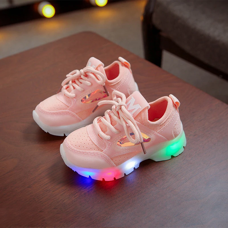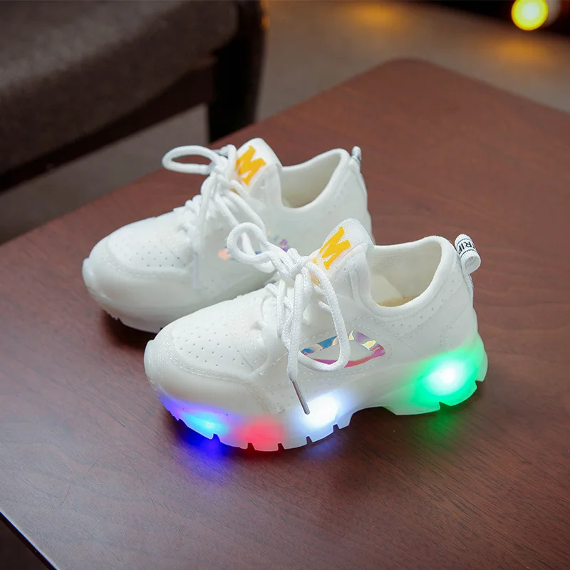 Детские светящиеся кроссовки для девочек, повседневные дышащие кроссовки со светодиодной подсветкой, осень 2019