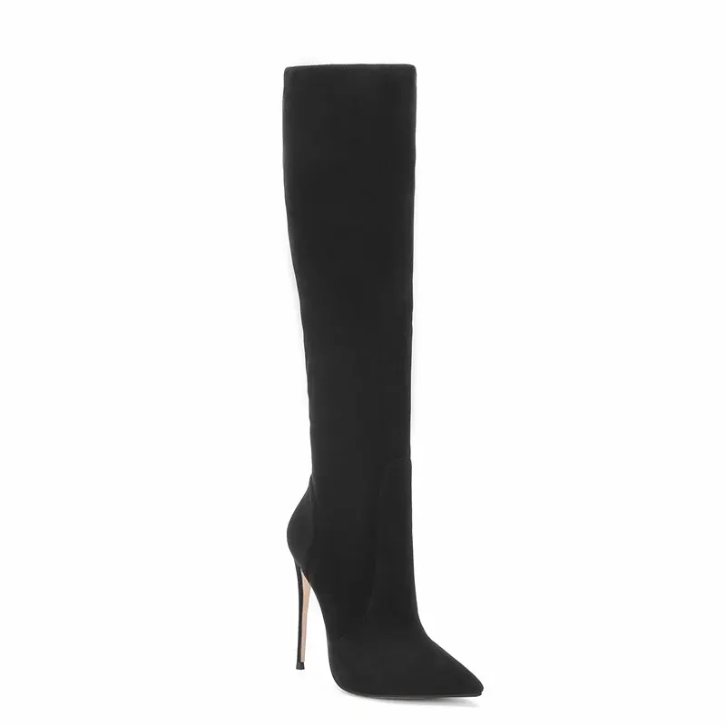 Женские сапоги до колена, на высоком каблуке, с острым носком