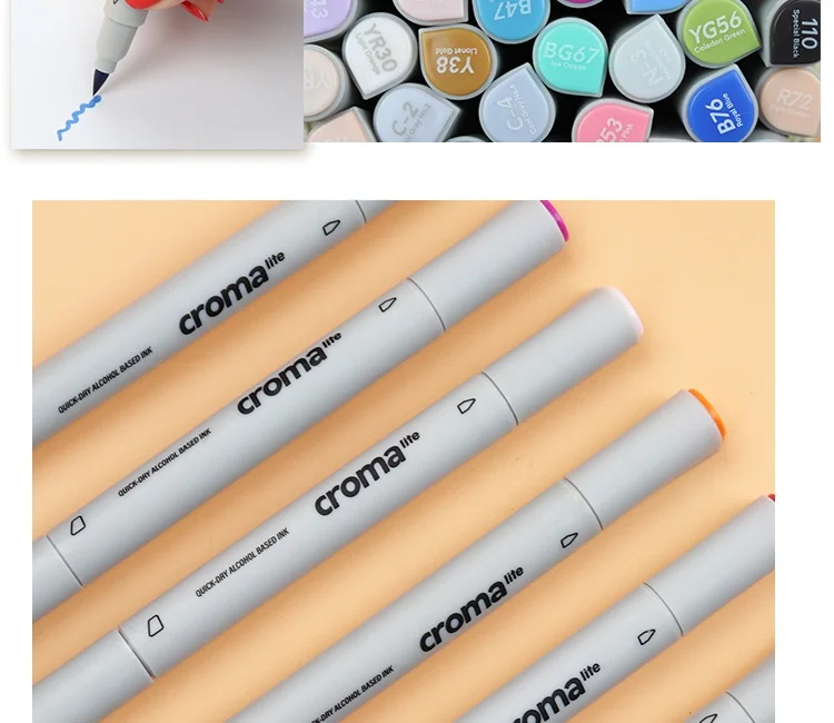 Маркеры на масляной спиртовой основе Croma, 122436486072216 цветов, водостойкие, для рисования скетчей, для студентов-аниме