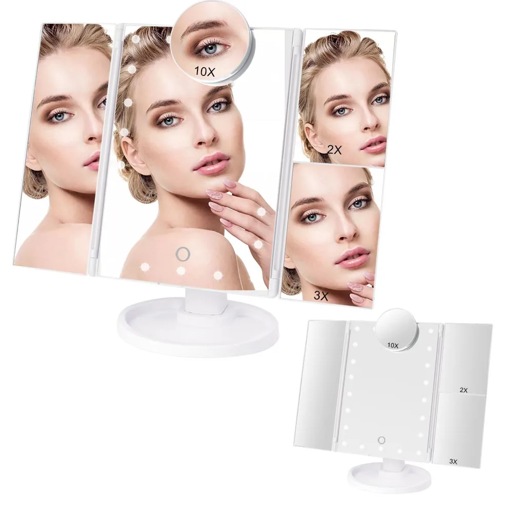 Зеркало для макияжа 22 светильник светодиодный сенсорный экран с 1X2X3X10X увеличительное туалетное зеркало 3 складные регулируемые настольные зеркала