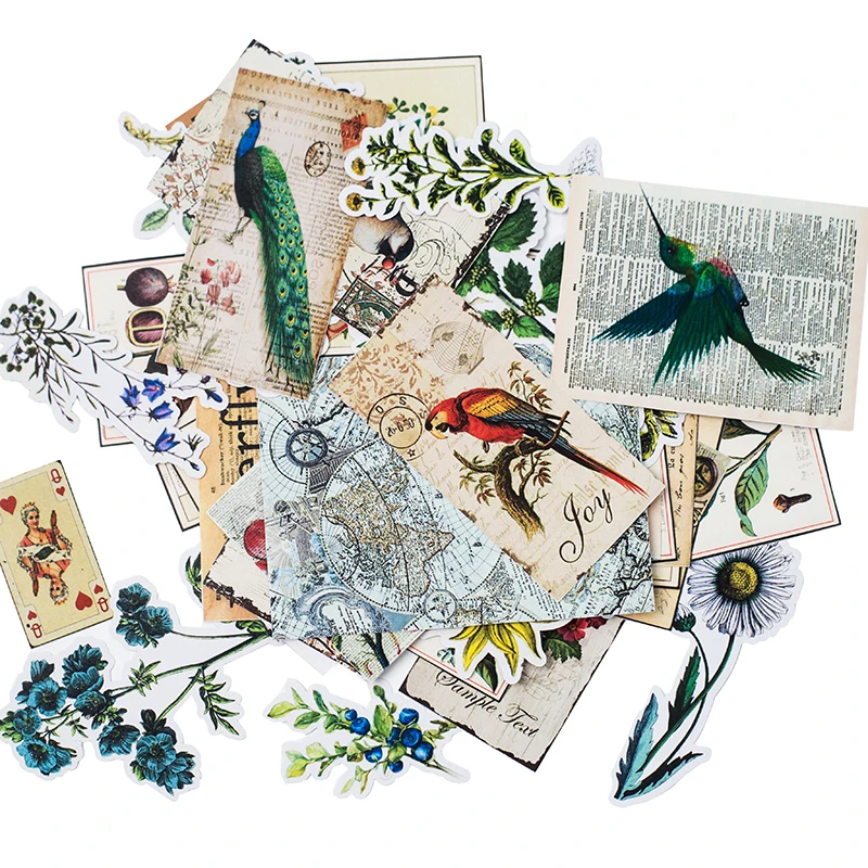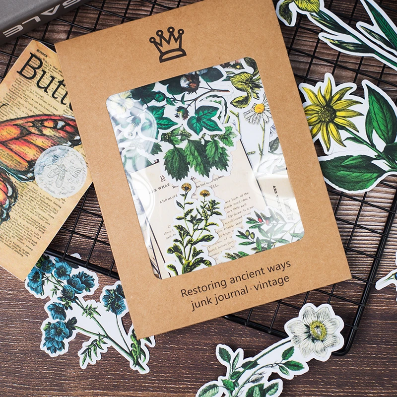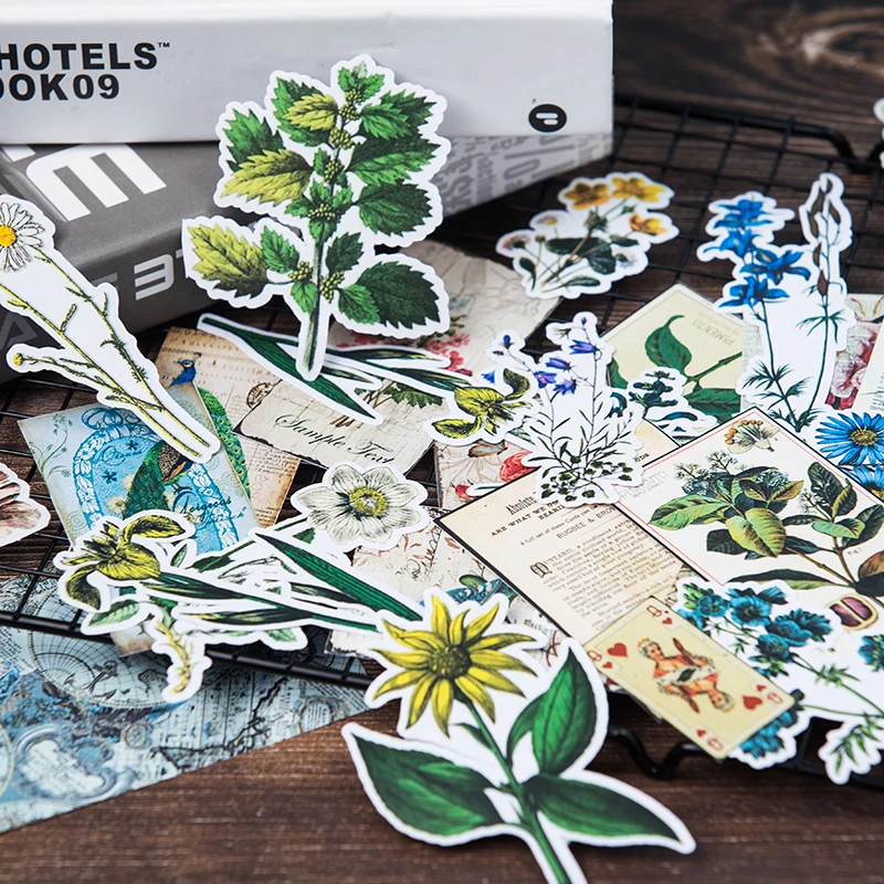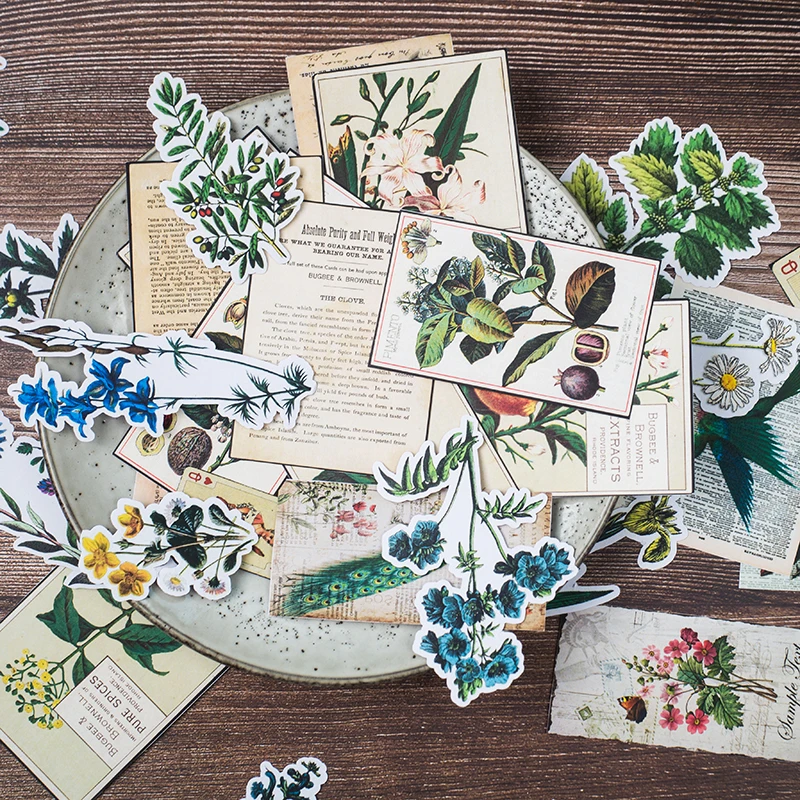 Наклейки декоративные для скрапбукинга, винтажные растения листьев, 62 шт.упаковка