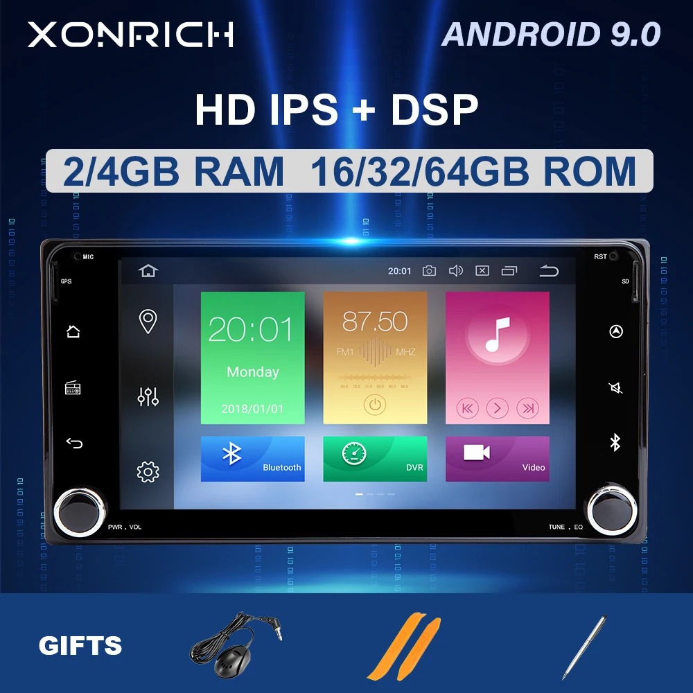 XONRICHАвтомобильный мультимедийный плеерАндроид 9,0Четырехъядерный процессор 1,5 ГГц+DDR3 4 Гб Flash+ 64ГБ памяти+Экран 1024*600 HD+Емкостный сенсорный экран+Wifi+GPS навигация+ 6686Радио чип+Микросхема усилителя TDA7851+Зеркальная связь для iPhone/Android мобильный телефон+Блютуз+FM/AM+RDS+Функция USB DVR+OBD2 функция+Функция Europe DAB+1080P видео воспроизведение+ Бесплатные картыИ так далее