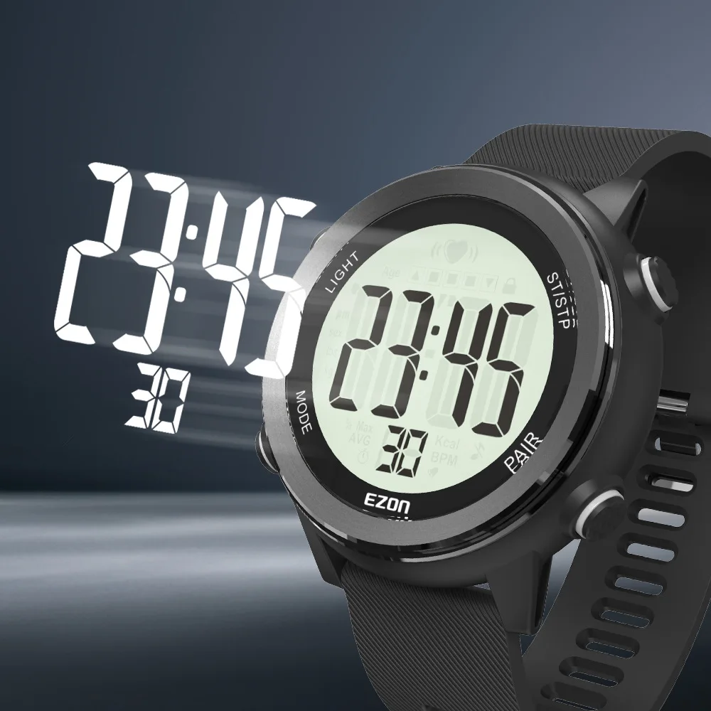 Часы-пульсометр мужские, спортивные, водонепроницаемые, цифровые, беспроводные, для бега, велоспорта, нагрудный ремешок
