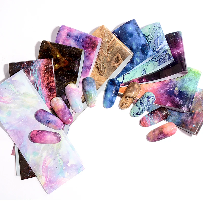 Встретить через 10 шт декорация для ногтей градиент звезда переводная бумага звездное небо дизайн ногтей водные наклейки сделай сам салон ногтей Фольга Набор
