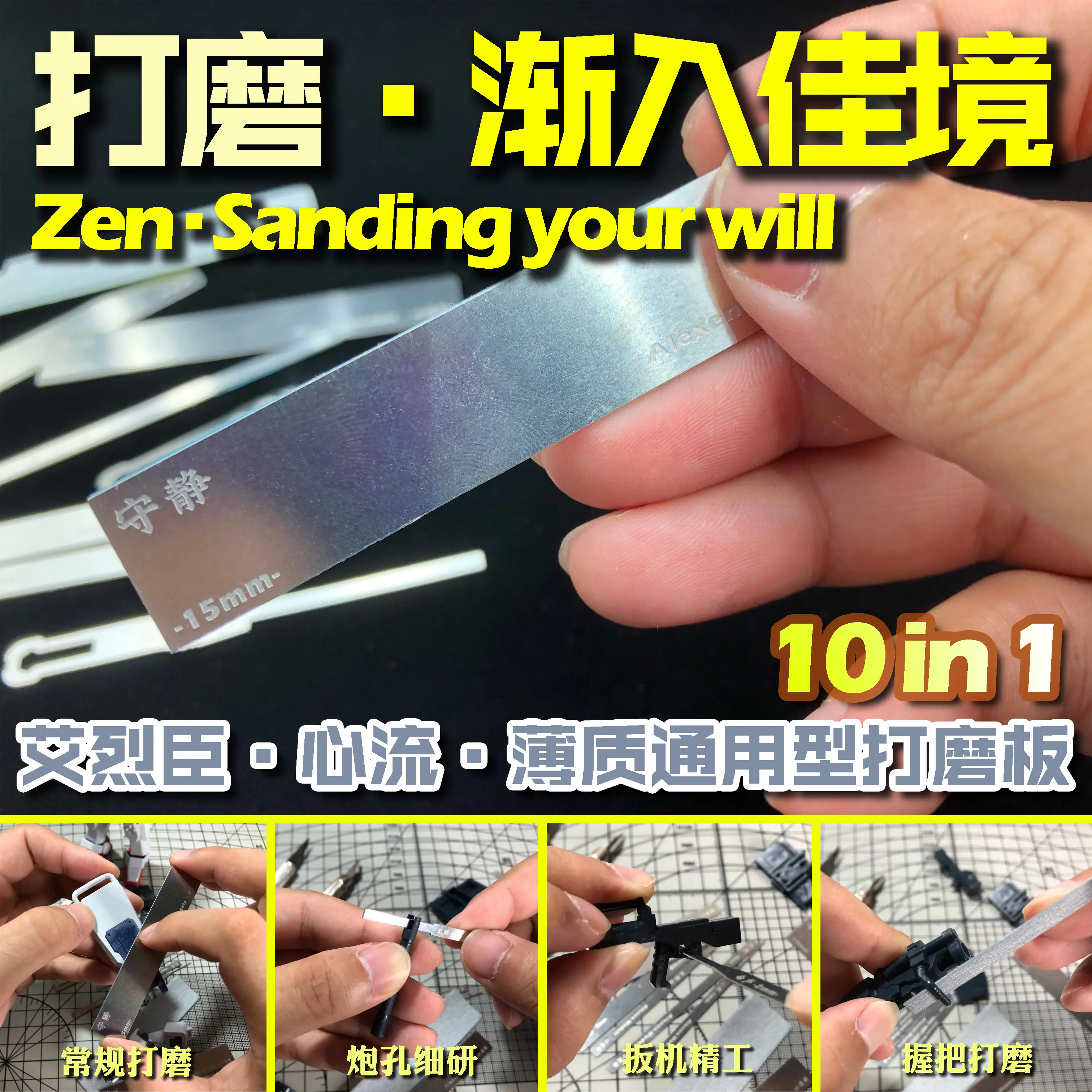 Тонкая полированная пластина из нержавеющей стали для военной модели Gundam, инструменты для заточки, 10 в 1, для хобби, шлифовальные инструменты