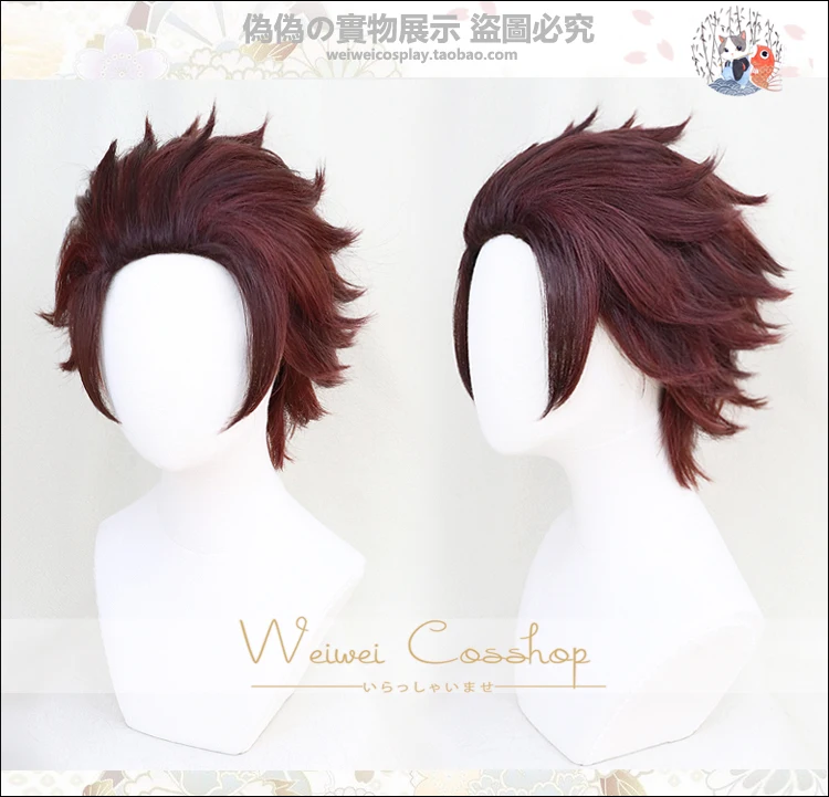 Парик для косплея рассекающего демонов Tanjirou Kamado, серьги-гвоздики, волосы Kimetsu No Yaiba + бесплатная шапочка для парика