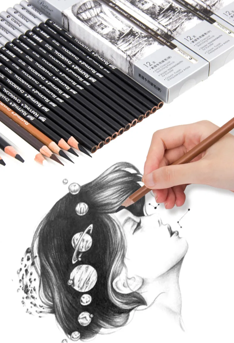 Угольный карандаш Профессиональный эскиз подчеркивает карандаш белый карандаш для эскизов искусство студентов художника начинающих ручная роспись набор