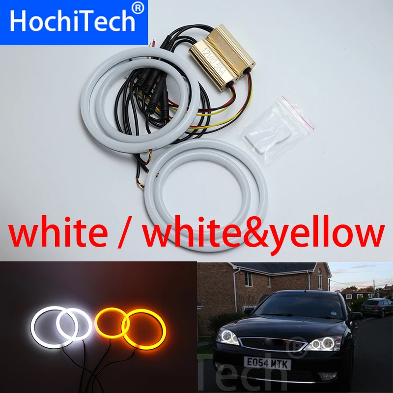 Для FORD Mondeo MK3 2001-2007 белый и желтый хлопок комплект светодиодов глаза ангела halo Кольцо указатель поворота светильник