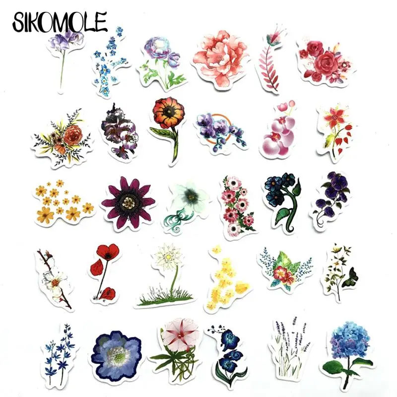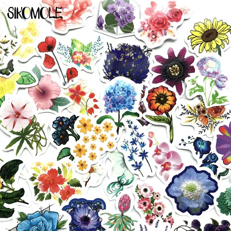 42 шт., водостойкие мини-наклейки с изображением цветов