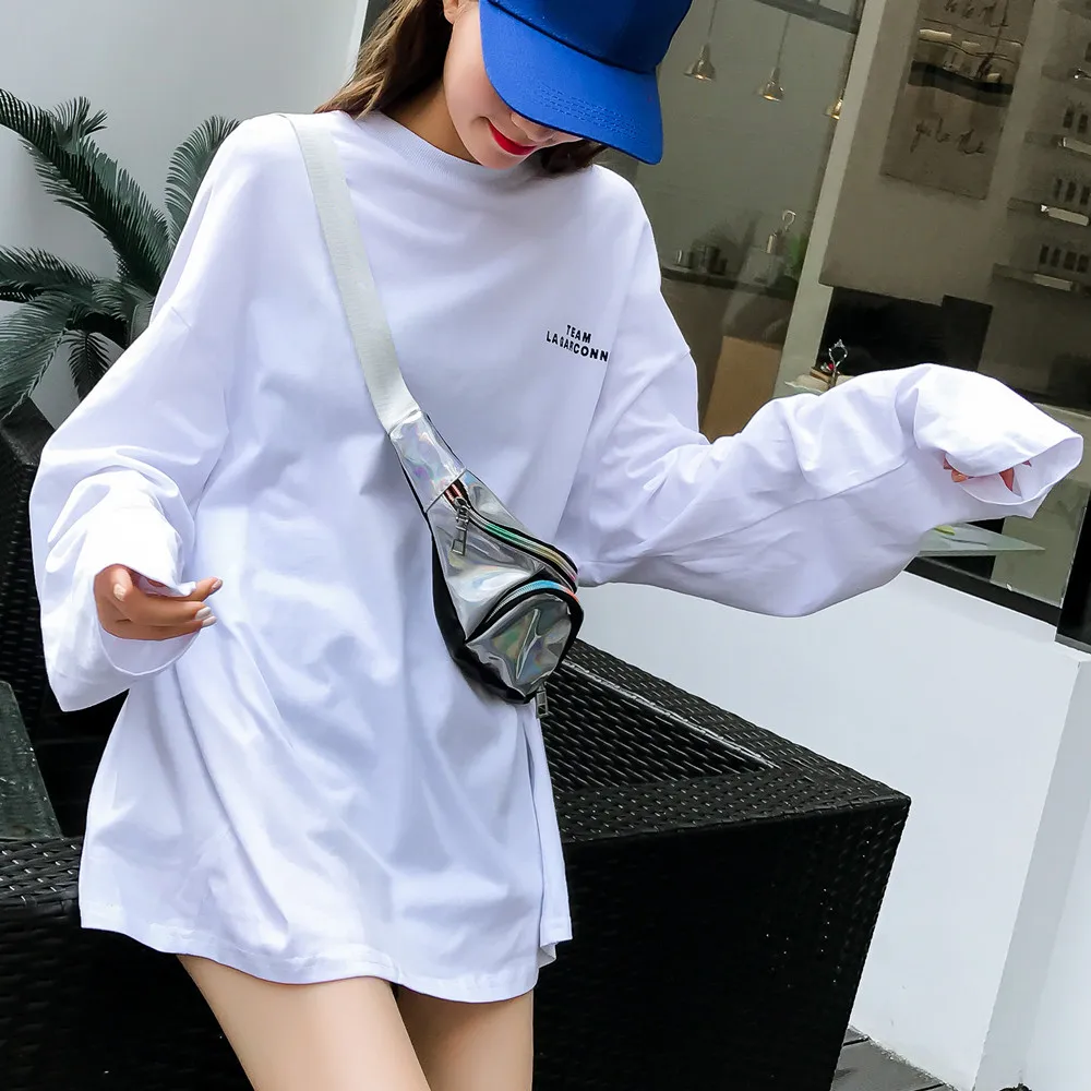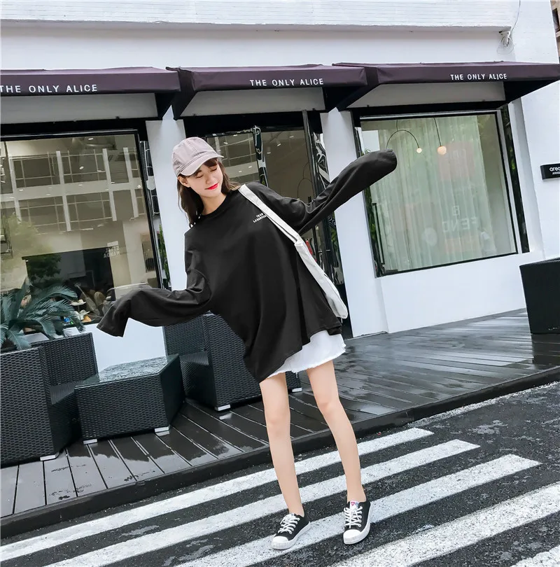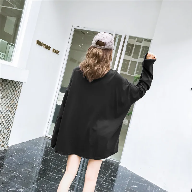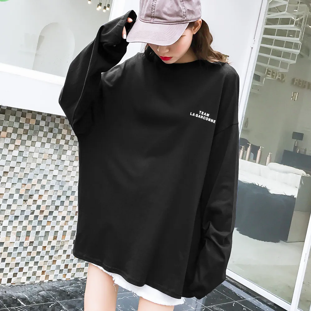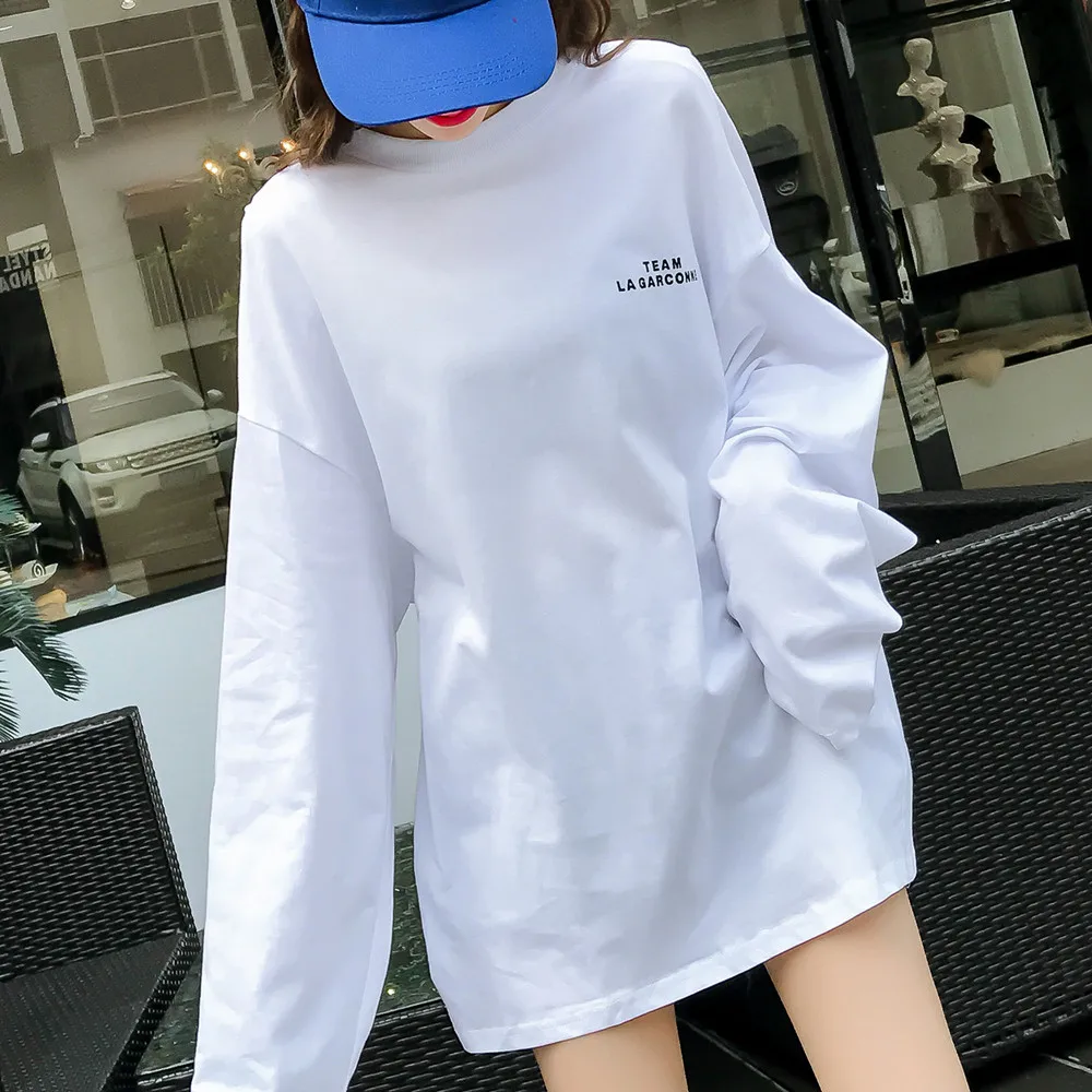Футболка женская оверсайз с длинным рукавом, Повседневная рубашка с круглым вырезом, топ с принтом надписи в стиле Харадзюку, уличная одежда в стиле хип-хоп, цвет черныйбелый