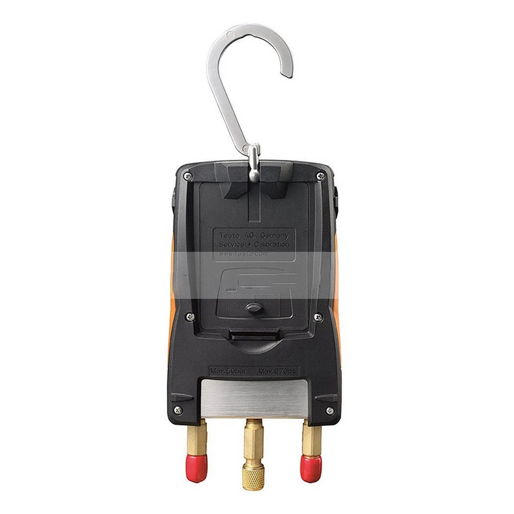 Testo 549 цифровой коллектор отличается надежным 2-ходовой клапан блок из металла с 3 соединения и 3 держатели шлангов, прост в обращении и даже может выдерживать суровые условия окружающей среды. Благодаря прочному корпусу прибор надежно защищен от воздействий в соответствии с классом защиты IP 42. Вы можете использовать подвесной крючок для закрепления коллектора в процессе измерения. Благодаря светящему дисплею вы можете легко считывать показания даже в темных условиях.