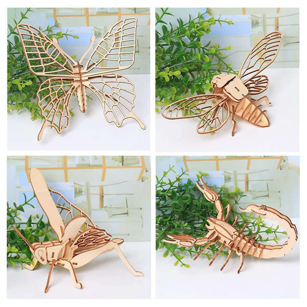 3D деревянная головоломка сделай сам, модель насекомых, игрушки, жи...