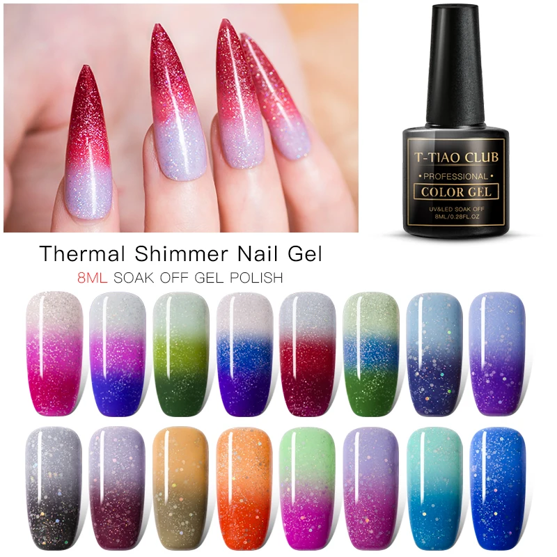 Гель-лак для ногтей, меняющий цвет, цвет радуги, голографический Лак Блеск, температура гель для изменения цвета, удаляемый замачиванием, верхнее УФ-покрытие