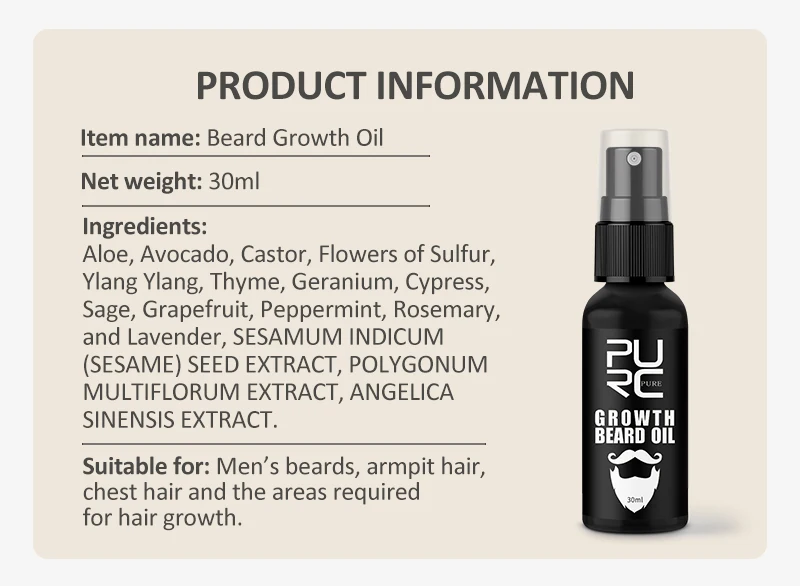 Масло для роста бороды PURC для ухода за бородой, более густые и густые волосы, масло для бороды для мужчин, уход за бородой