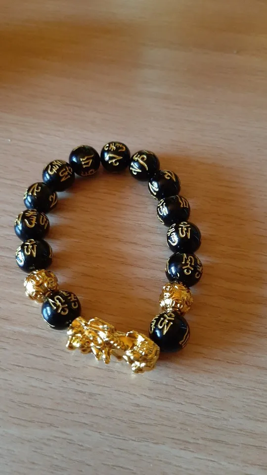 Обсидиановые бусины браслеты богатство и Удачи Китайский Фэншуй пик...