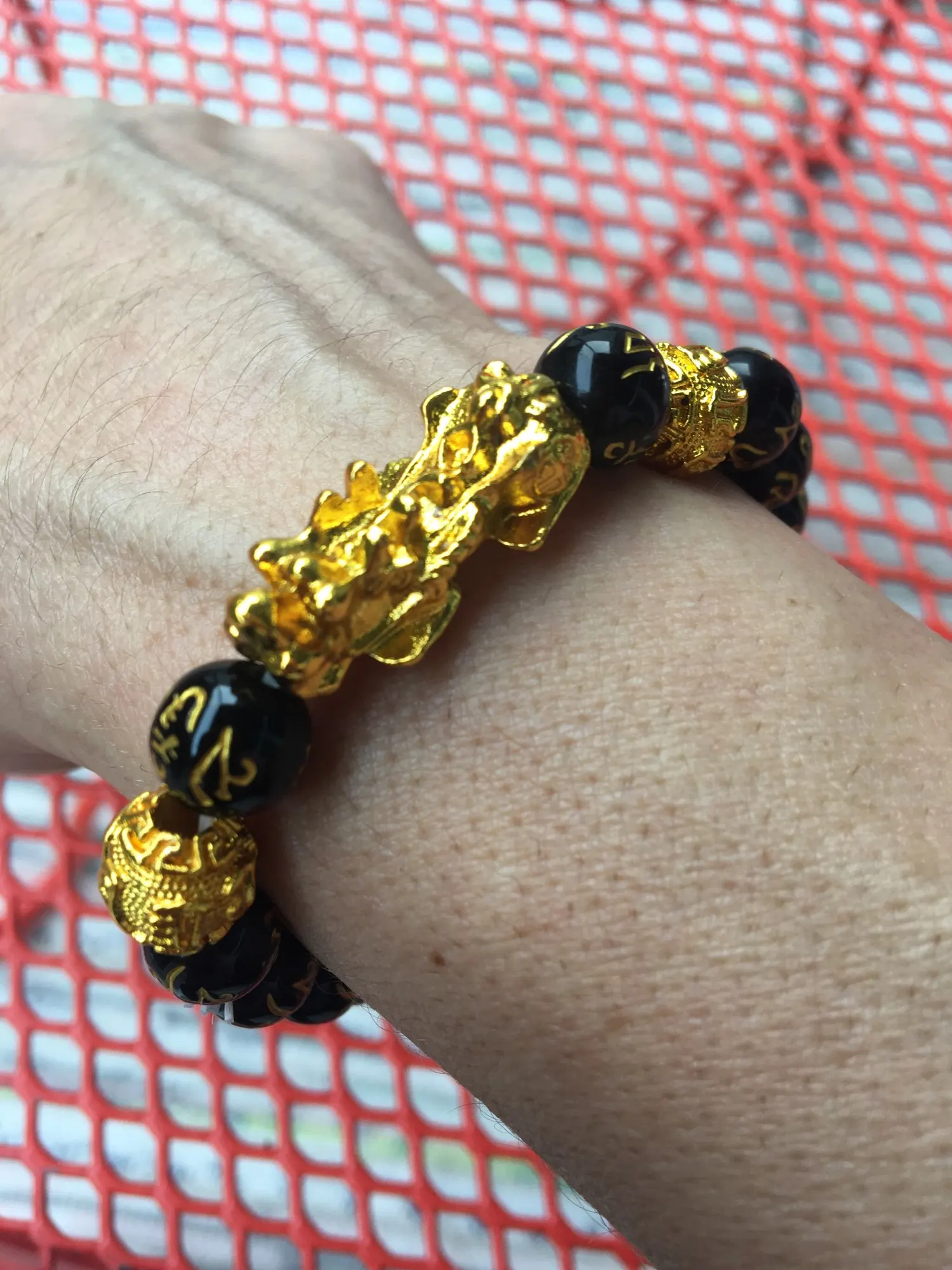 Браслет фэн-шуй с каменными бусинами из обсидиана, для мужчин, женщин, мужчин, унисекс-браслет золото, черный, Pixiu, богатство и удача, для женщин и мужчин